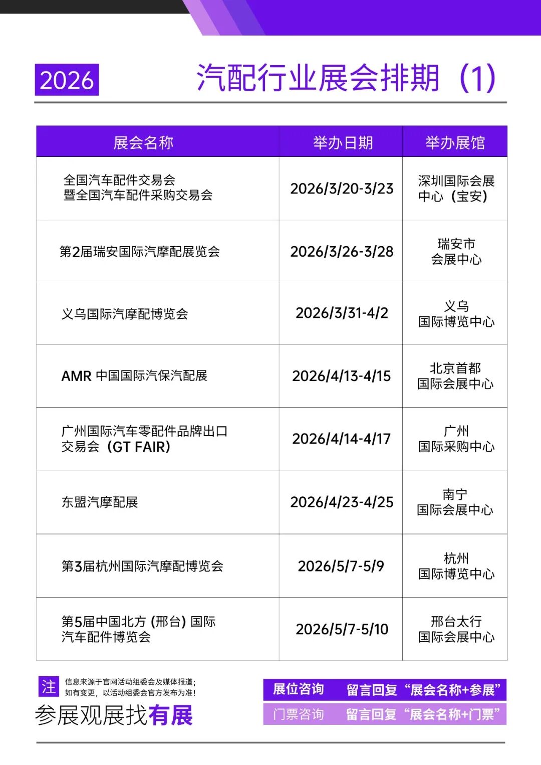 2026年全国汽配行业展会排期详情(图文版)