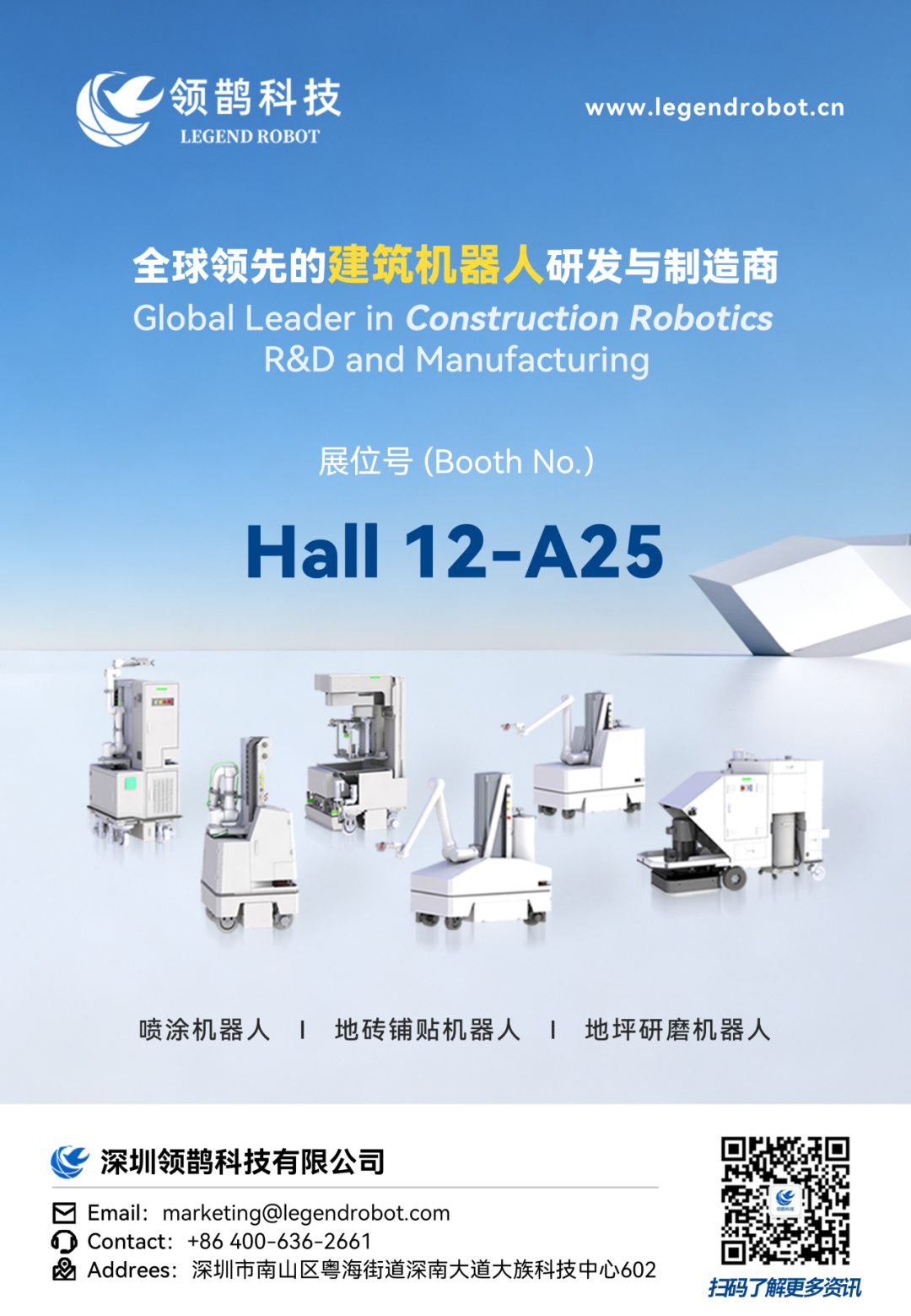 🎯全系列产品亮相:除了新品,您还能在现场深入了解领鹊科技覆盖建筑多个环节的智能机器人产品矩阵,感受科技为传统行业带来的深刻变革。