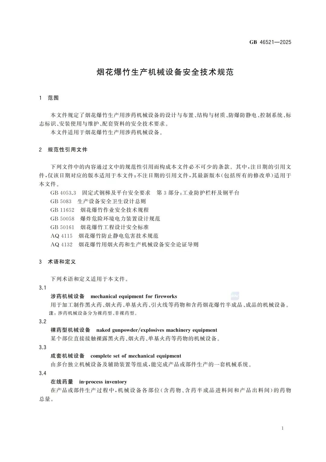 GB 46521-2025 烟花爆竹生产机械设备安全技术规范丨11页.pdf
