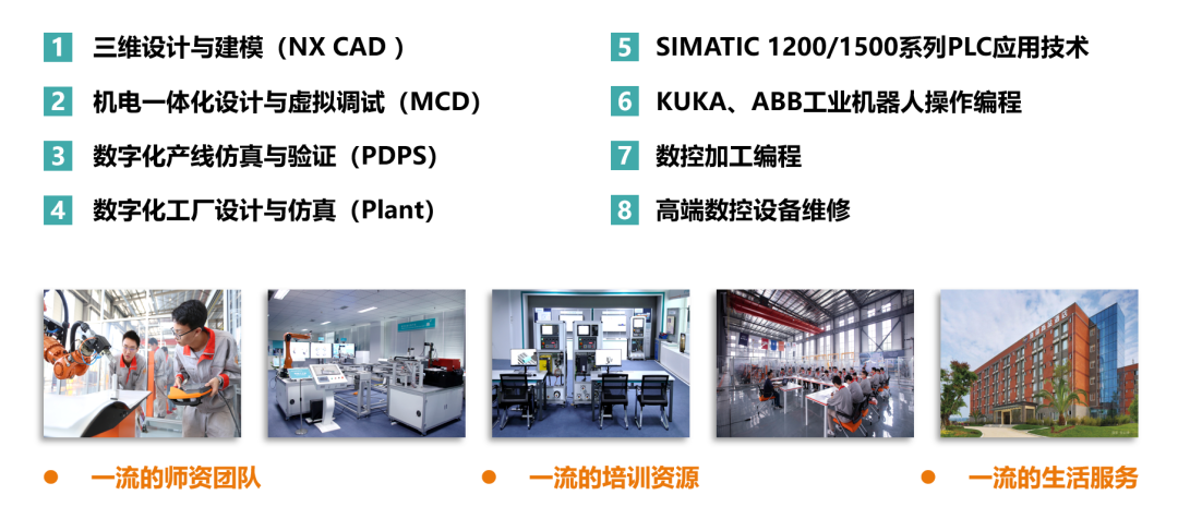 公司依托西门子高水平的协同创新平台,结合西门子认证培训中心和四川工程职业技术大学高技能人才培训基地的雄厚实力。通过智能制造人才培养体系建设、面向企业和学生,提供如下智能制造领域培训服务:
