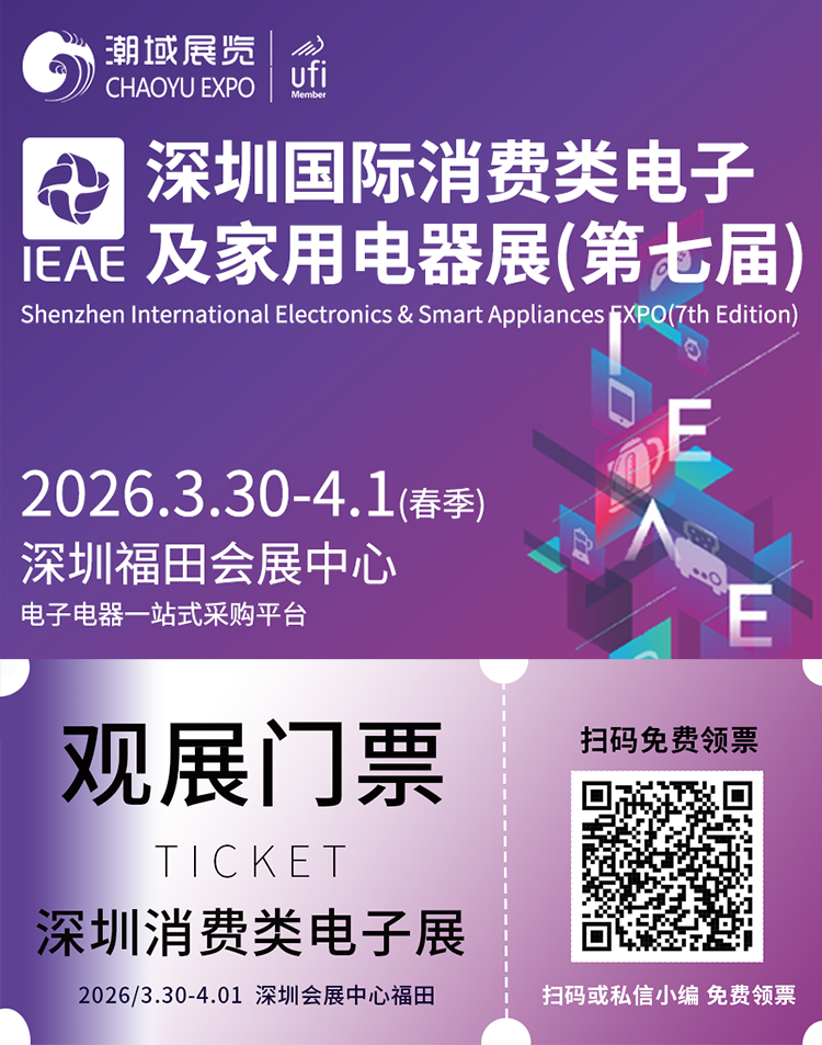 2026年3月30日至4月1日,第七届IEAE深圳国际消费类电子及家用电器展(春季)将在深圳福田会展中心举办,汇聚行业资源,引领技术聚合与智造升级新趋势。