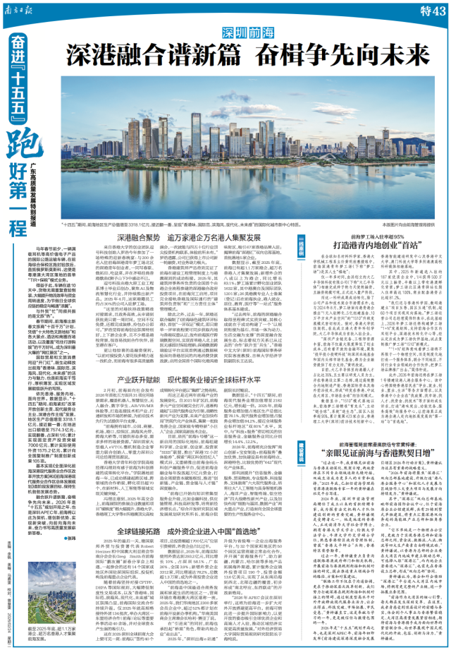 2026年,前海将充分发挥“南山创新+宝安制造+前海服务”叠加优势,加快建设具有前海特点、深港特色、比较优势的“642”现代化产业体系。