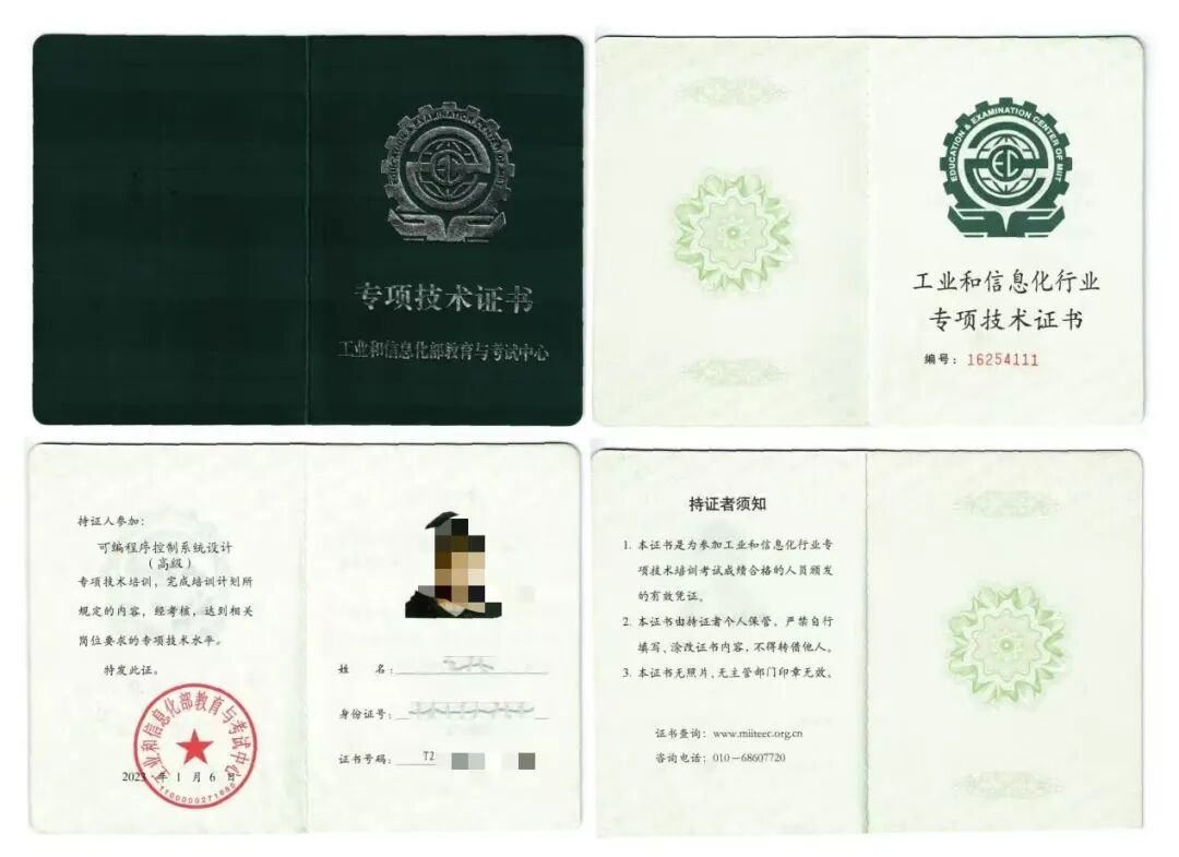 3、考试认证:人力资源和社会保障局四级《电工》、《工业机器人系统运维员》、《工业机器人系统操作员》职业技能等级证书,经培训考评通过后颁发证书,费用另计,网上查询、全国通用。