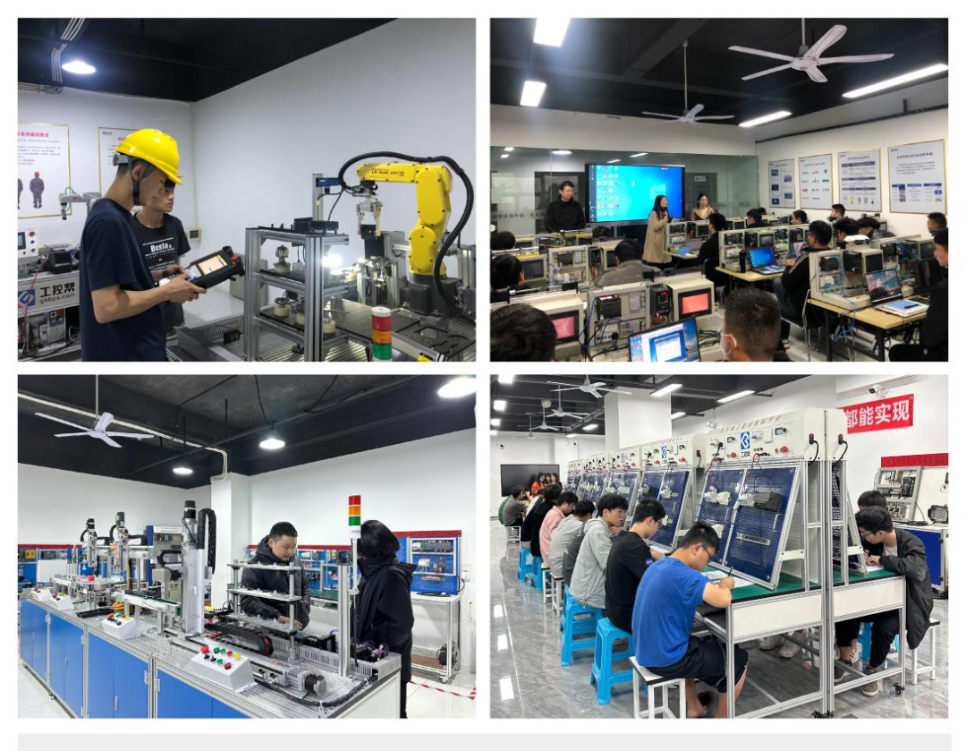 学校经过多年的探索和发展,已形成完善的服务于智能制造产业的成熟课程体系,包含:电工-电气自动化技术-机械非标设计技术-工业机器人技术-机器视觉技术-数字工厂应用技术等课程,系统教授电工技术、PLC编程技术、非标机械设计、机器视觉技术、工业机器人操作调试及维修维护技术等。在教学上保证学员一人一机、理实一体、学做结合,帮助学员顺利完成学习目标并实现就业。