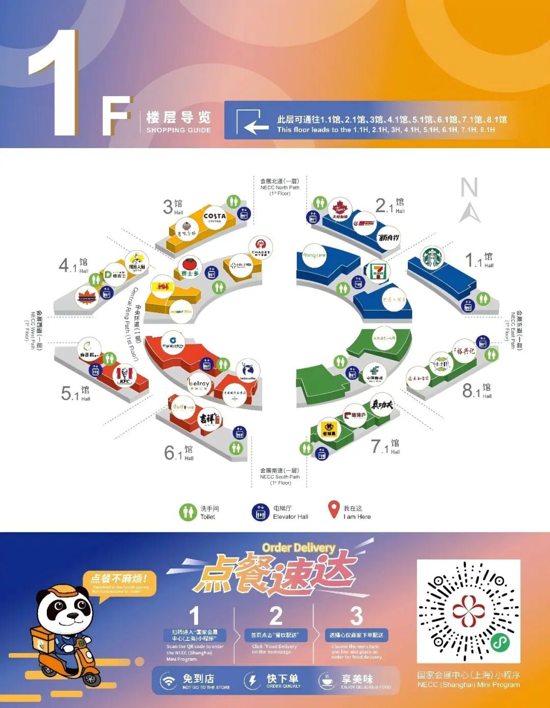逛展饥肠辘辘时,商业广场飘来的香气就是救星!真功夫、康师傅牛肉面、肯德基、赛百味、星巴克、霸王茶姬、上海小吃馆……中餐、西餐、小吃、咖啡饮品等各类美食,应有尽有!捧一份热腾腾的美食,舌尖满足的瞬间,能量满格,下一段观展旅途又充满期待。