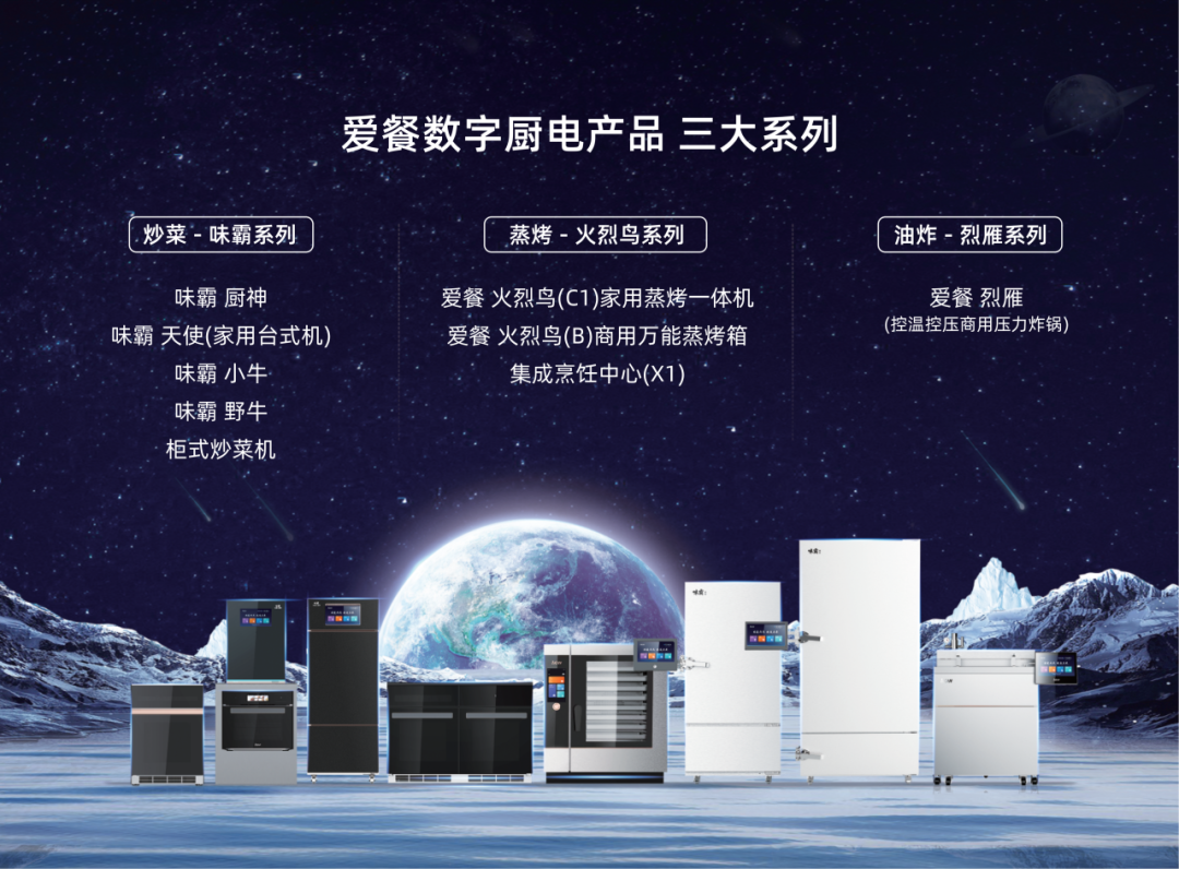 通过全新的数字厨电,爱餐终将走入千家万户。标准化的烹饪,也将带来标准化的食材,届时,终端网络化的食材供应,和操作自动化的烹饪机器人,将彻底改变传统的食材供应和烹饪方式,解放全民双手,为千家万户提供便捷、多样、美味、健 康的饮食。我们也将以数字厨电为媒介,向全世界展示中国高新科技成果,并借此将中华美食文化带向世界。