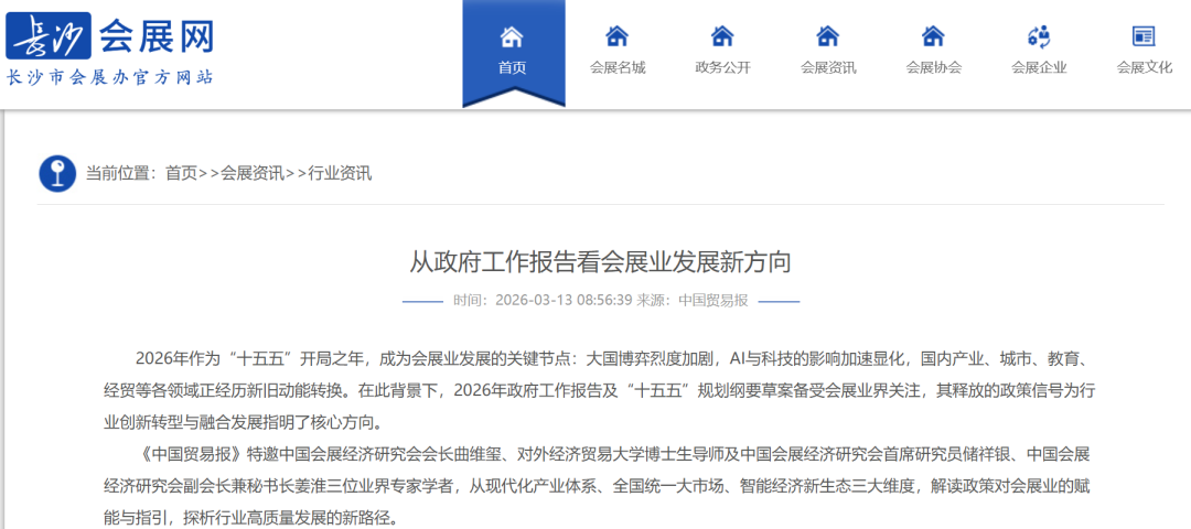 《中国贸易报》近日特邀中国会展经济研究会三位权威专家,解读2026年政府工作报告及“十五五”规划对会展业的指引。