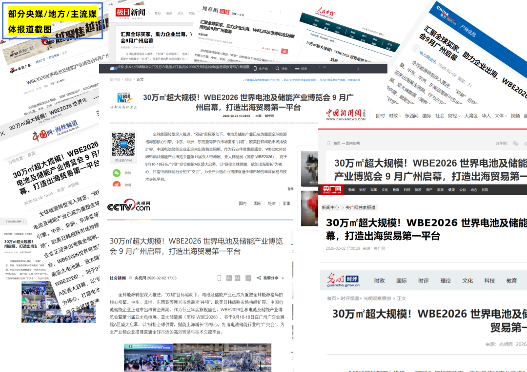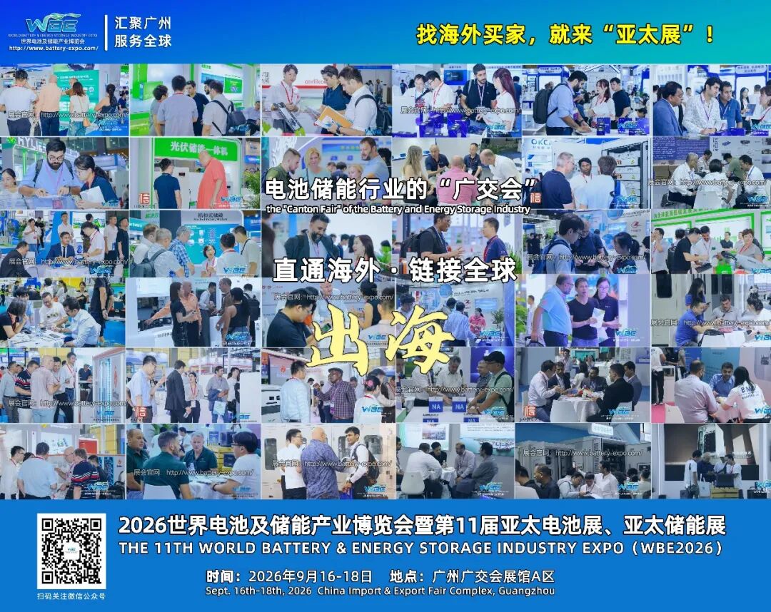 全球能源转型深入推进,在“双碳”目标驱动下,电池及储能产业已成为重塑全球能源格局的核心引擎。中东、非洲、东南亚等新兴市场需求“井喷”,欧美日韩成熟市场持续扩容,中国电池储能企业正迎来出海黄金周期。作为行业年度旗舰盛会,WBE2026 世界电池及储能产业博览会暨第11届亚太电池展、亚太储能展(简称WBE2026),将于9月16-18日在广州广交会展馆A区盛大启幕,以“链接全球供需,赋能出海增长”为核心,打造电池储能行业的“广交会”,为全产业链企业搭建直通全球市场的高效贸易与技术交流平台。