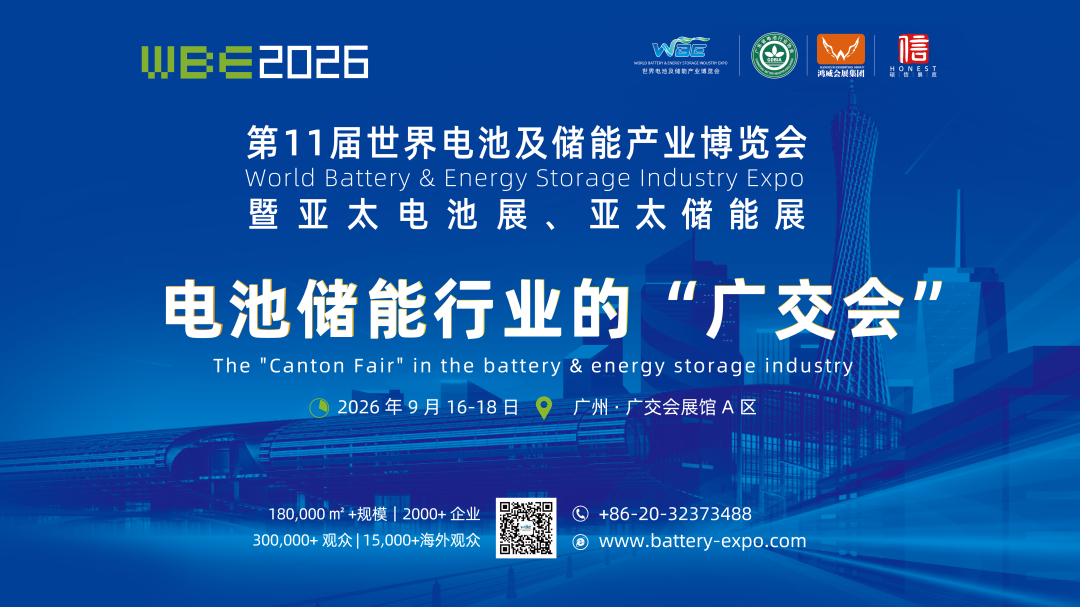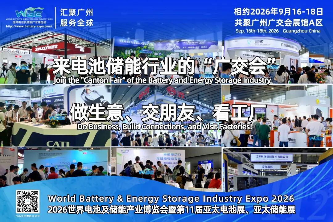2026世界电池及储能产业博览会定档于2026年9月16-18日在广州广交会展馆A区举行