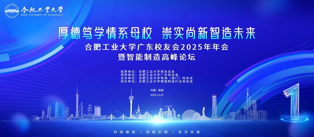岁月如歌,情谊如酒。无论你身在何方、深耕哪个领域,母校的“厚德笃学、崇实尚新”始终是我们共同的精神烙印。2025 年 12 月 27 日,珠海 (澳门) 校友会携手智能制造行业校友会,将在大湾区美丽珠海重磅举办年度盛会——合肥工业大学 2025 年广东校友会年会暨智能制造高峰论坛,以“厚德笃学情系母校,崇实尚新智造未来”为主题,邀你共赴这场情谊之约、发展之会!