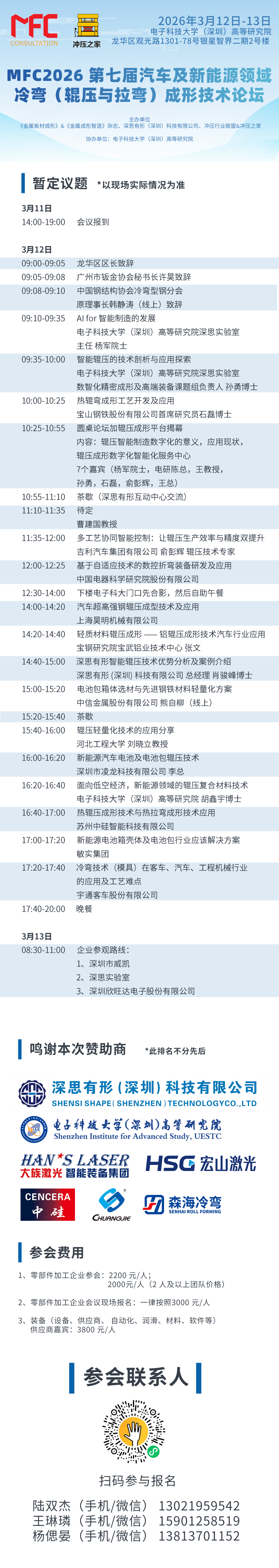 深耕智造,聚力深圳!深思有形主办MFC2026第七届汽车及新能源等领域冷弯(辊压与拉弯)成形智能制造前沿技术论坛启幕,敬请期待!
