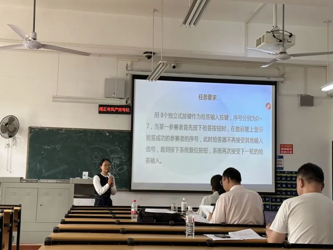 比赛现场,参赛教师们依次登场。袁珣老师以其独特的教学导入迅速抓住学生注意力,巧妙引导学生深入知识内核;曾倩老师借助精心制作的多媒体课件,将抽象知识具象化,让复杂的原理变得通俗易懂;何家萱老师则凭借极具感染力的语言和丰富的肢体动作,营造出活泼而高效的课堂氛围。每位教师都以饱满的热情投入,充分运用现代教学手段与传统教学方法相结合,展现出扎实的专业功底和各具特色的教学风格。