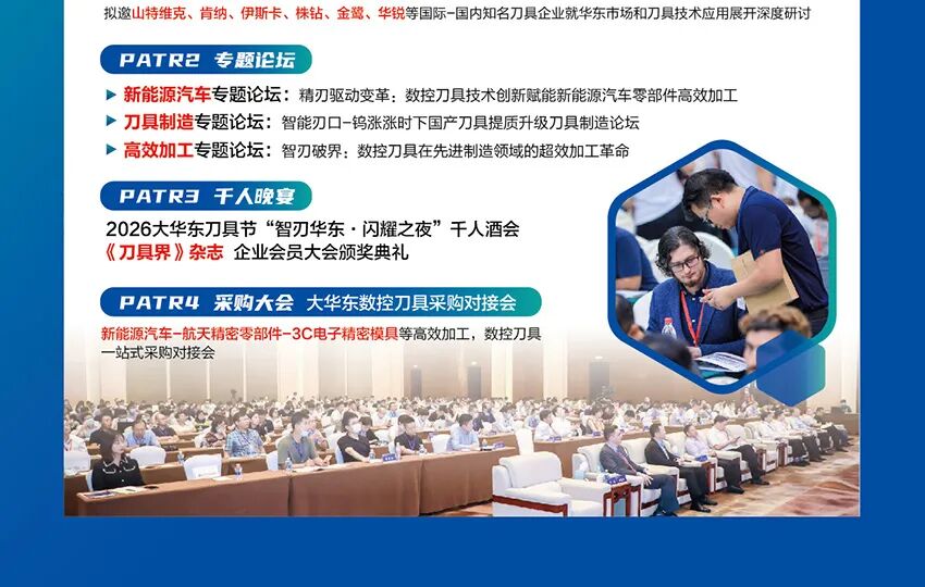 2026合肥机床展配套活动丰富,同期举办2026国际汽车先进制造技术大会暨汽车轻量化技术研讨会、高强钢暨热冲压成形技术、金诺采购商大会等供需商贸活动。10+场平行论坛、50+行业特邀嘉宾,以全球视野、立足安徽,面向长三角,结合安徽产业优势,围绕新能源汽车轻量化发展与零部件加工轻量化金属材料应用、汽车工业数字化时代、汽车模具精密加工、机器人装配系统集成等热点话题方向探讨研判行业发展趋势。
