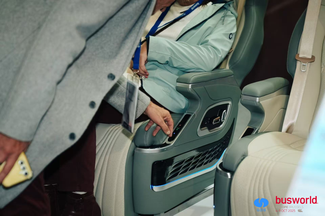 “2+1”电动商务椅集成通风、加热、按摩、无线充电等多元配置,搭配电动化调节系统,让座椅功能实现“一键定制”。这类设计对智能出行场景深度挖掘,精准契合了全球客车行业的智能化升级需求。