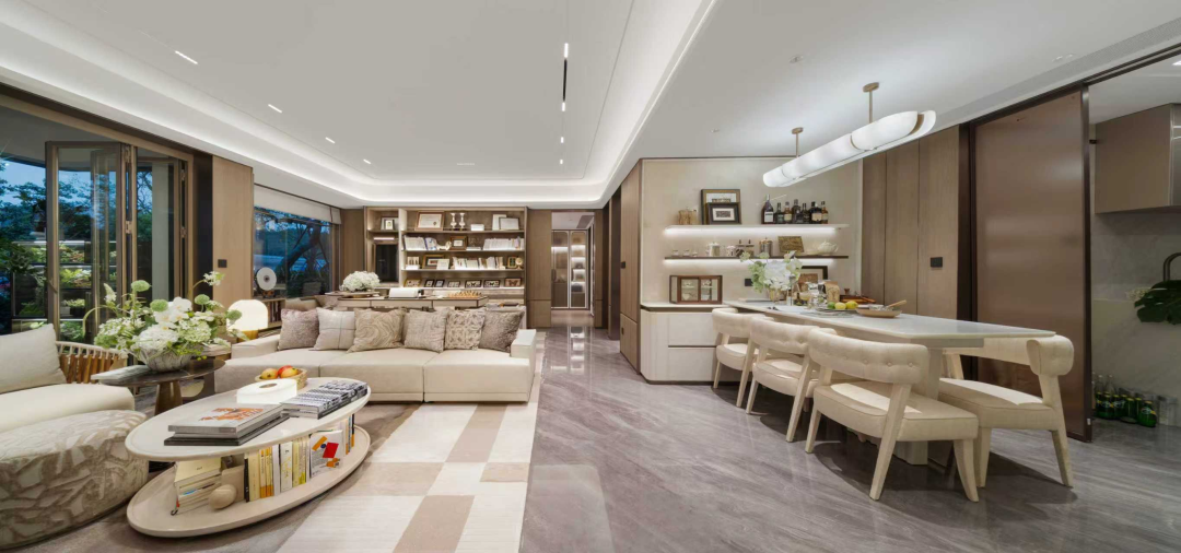 项目的精工巧思,更深入生活细节。全屋标配中央空调,LDKB一体化方厅设计促进了家人的互动交流。全屋系统化收纳思维,从玄关柜到厨房U型收纳,让物品各归其位。同时,无高差地面、主卧旁卫生间等适老关怀,以及将儿童学习区融入公厅的设计,无不体现出对全龄段家庭成员细致入微的关怀。