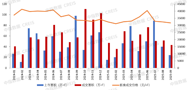 图:广州2024年1月-2025年9月商品住宅成交走势