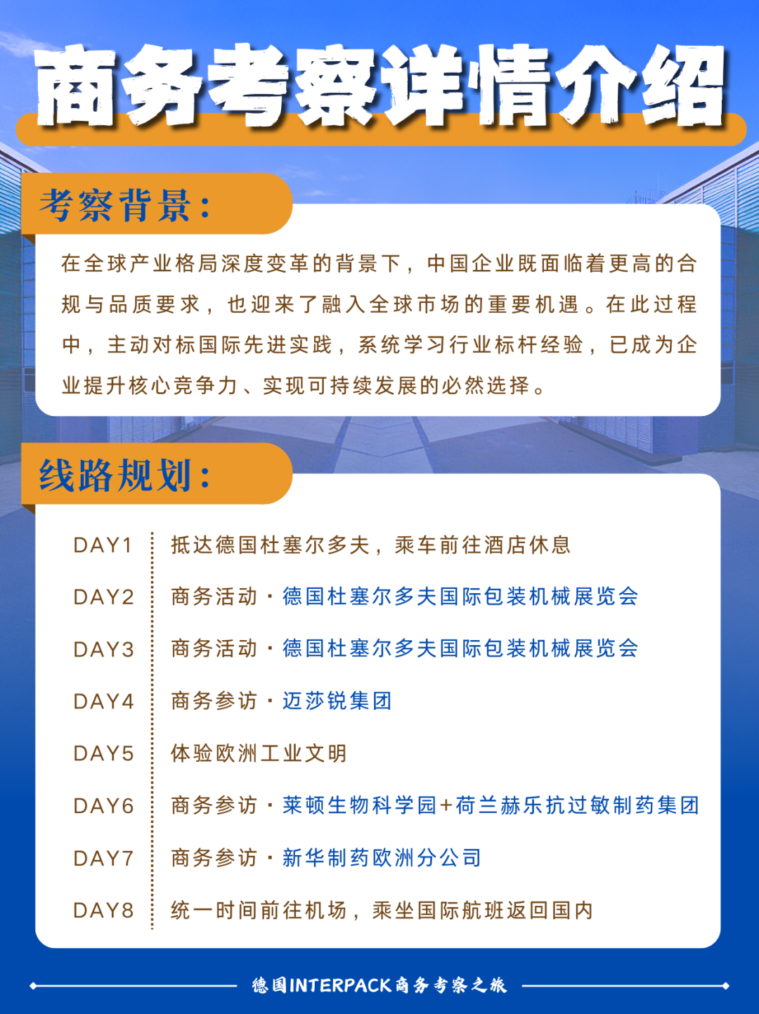 💼 更多工业考察、德国展会、包装机械、生物制药、欧洲商务、产业升级、企业出海、生物医药、荷兰商务考察等精彩内容将持续为您分享!