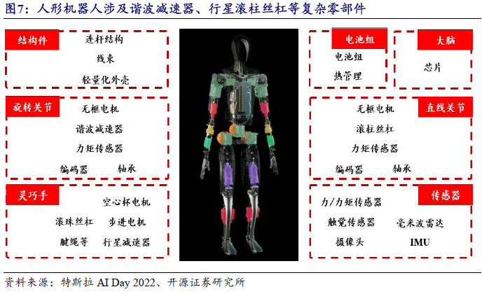 1.3.1、人形机器人涉及零部件众多,产业链玩家百花齐放