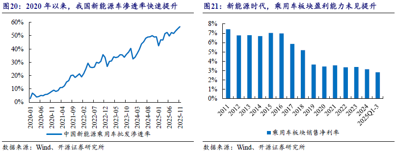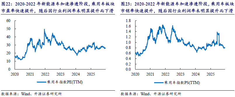2020-2022 年处于新能源车加速渗透的阶段,乘用车板块的估值随之迎来显著提升,其中行业龙头还享有更高的估值溢价;不过从 2023 年起,行业开始面临产能过剩的担忧,板块估值也逐步回落。