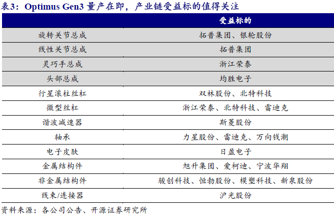 Optimus Gen2 几乎不具备量产可行性,因此特斯拉对 Optimus Gen3(V3)的设计进行了彻底改进,在增加功能的同时使其适配量产需求。特斯拉 CEO 埃隆・马斯克曾多次预测,人形机器人未来的市场需求可能远超汽车,Optimus 或许会成为 “史上最伟大的产品”。特斯拉与其他美国汽车公司不同,它具备实现通用人工智能的要素,以及卓越的电气 / 机械工程、规模生产能力;而由于人形机器人领域的供应链尚未成熟,若要实现每年生产 100 万台 Optimus 甚至更多,其制造环节将面临巨大挑战。这需要高度垂直整合并深度介入供应链,而 Optimus 工程团队大多来自汽车部门,为规模量产提供了先天优势。特斯拉的垂直整合能力、规模化制造经验与成本控制方法,将从汽车工厂复制到机器人生产线,有望大幅降低人形机器人的硬件成本,加速其商业化普及进程。