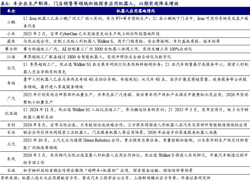• (3)利用供应链优势推动量产及降本:车企具备强大的制造能力、零部件供应链体系,能够迅速整合产业链资源以推动机器人产品实现量产,并借助其规模优势推动成本下降、加速机器人产品的普及。