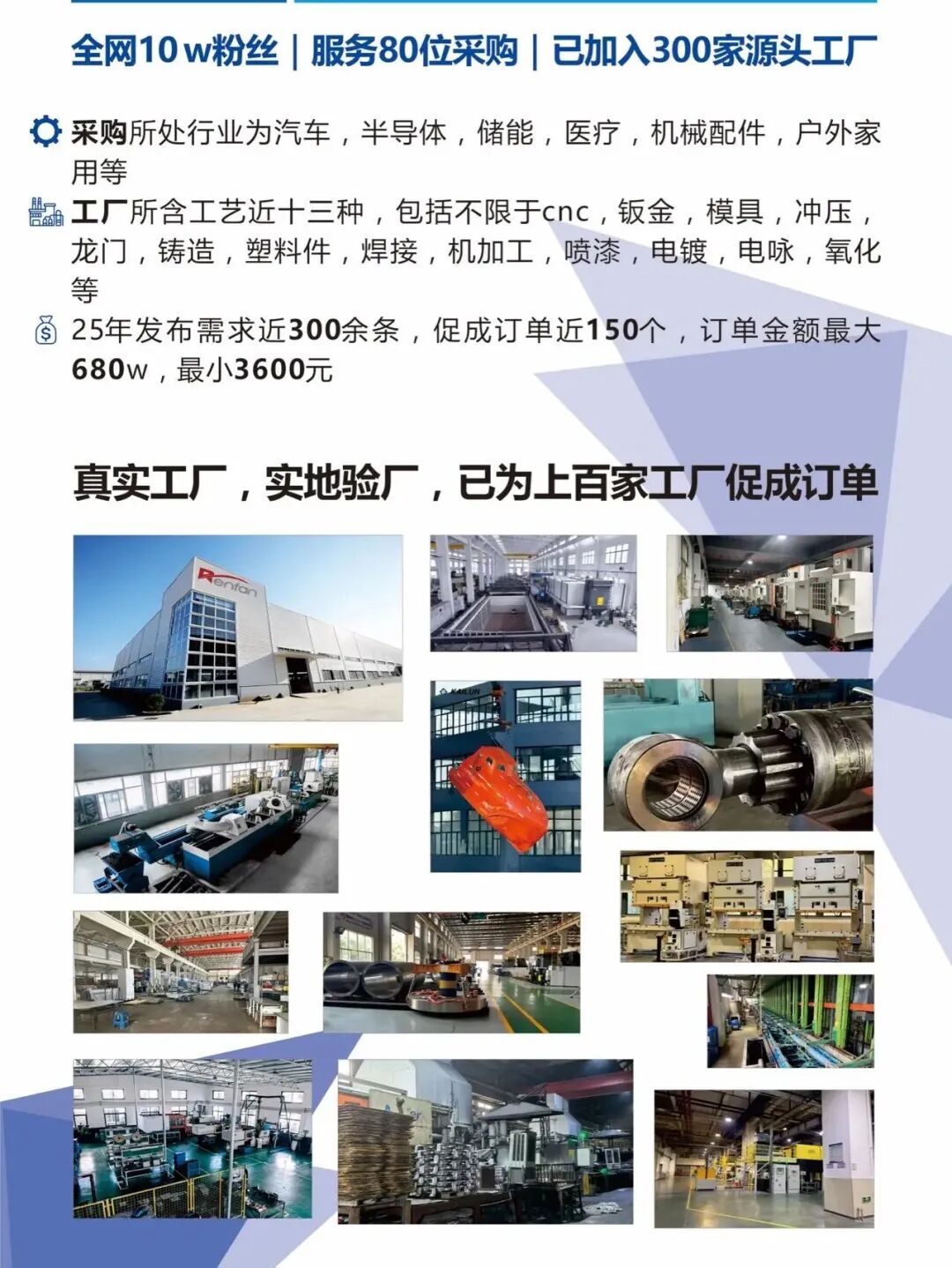 采购所处行业为:汽车,半导体,储能,医疗,机械配件,户外家用等