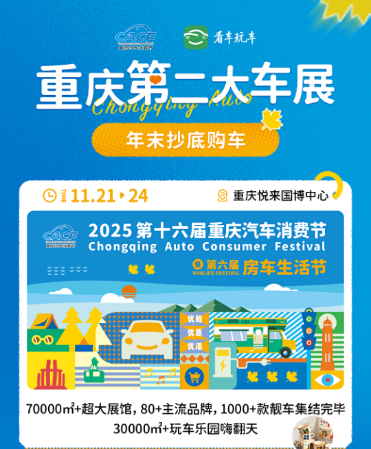 2025第十六届重庆汽车消费节将于11月21-24日在重庆国际博览中心盛大举办。