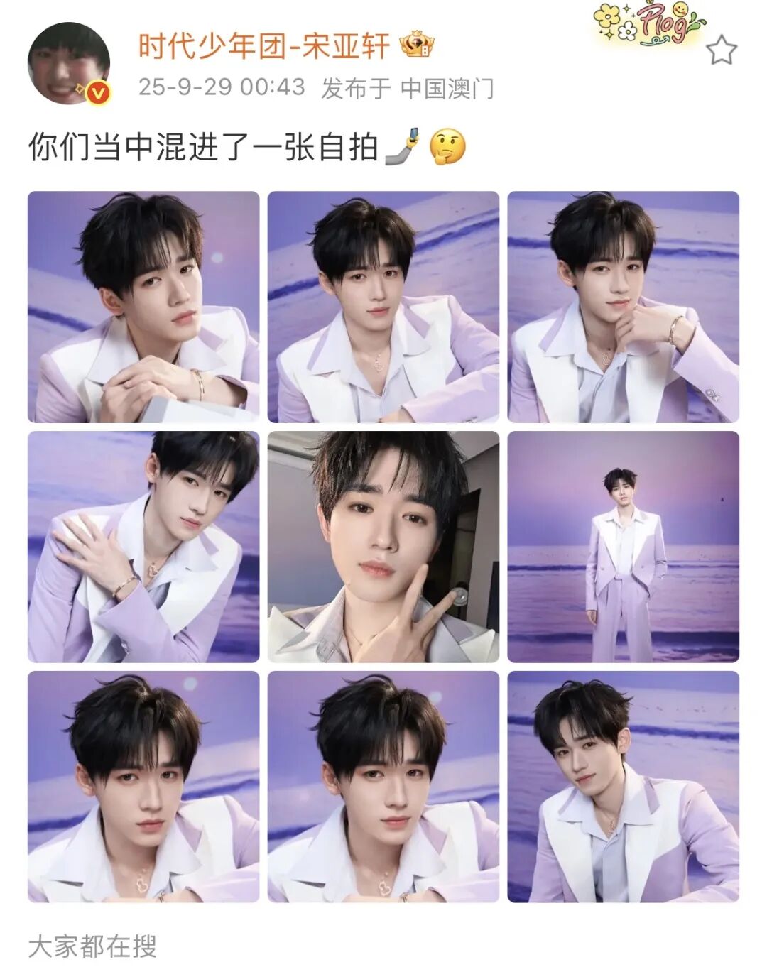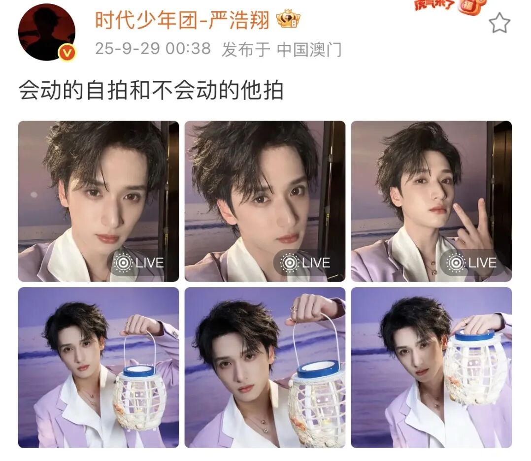 每一个表情都鲜活带感,每一个pose都藏着造型巧思。浩翔@时代少年团-严浩翔 六宫格新鲜出炉,快来一键保存,收藏属于自己的心动时刻吧~