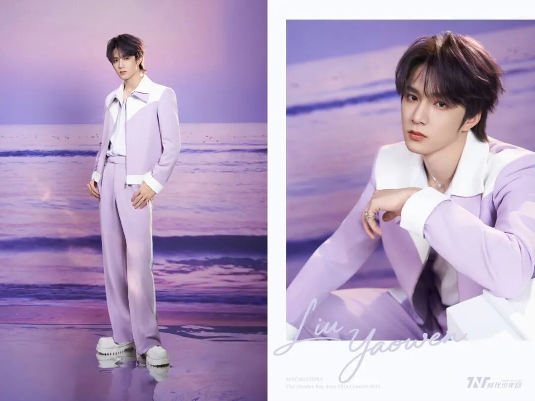 浅紫与纯白的时尚碰撞,在梦幻海境的映衬下更显格调。耀文@时代少年团-刘耀文 站姿微调15度,更有利于保护腰间盘的健康,好好休息,晚安~