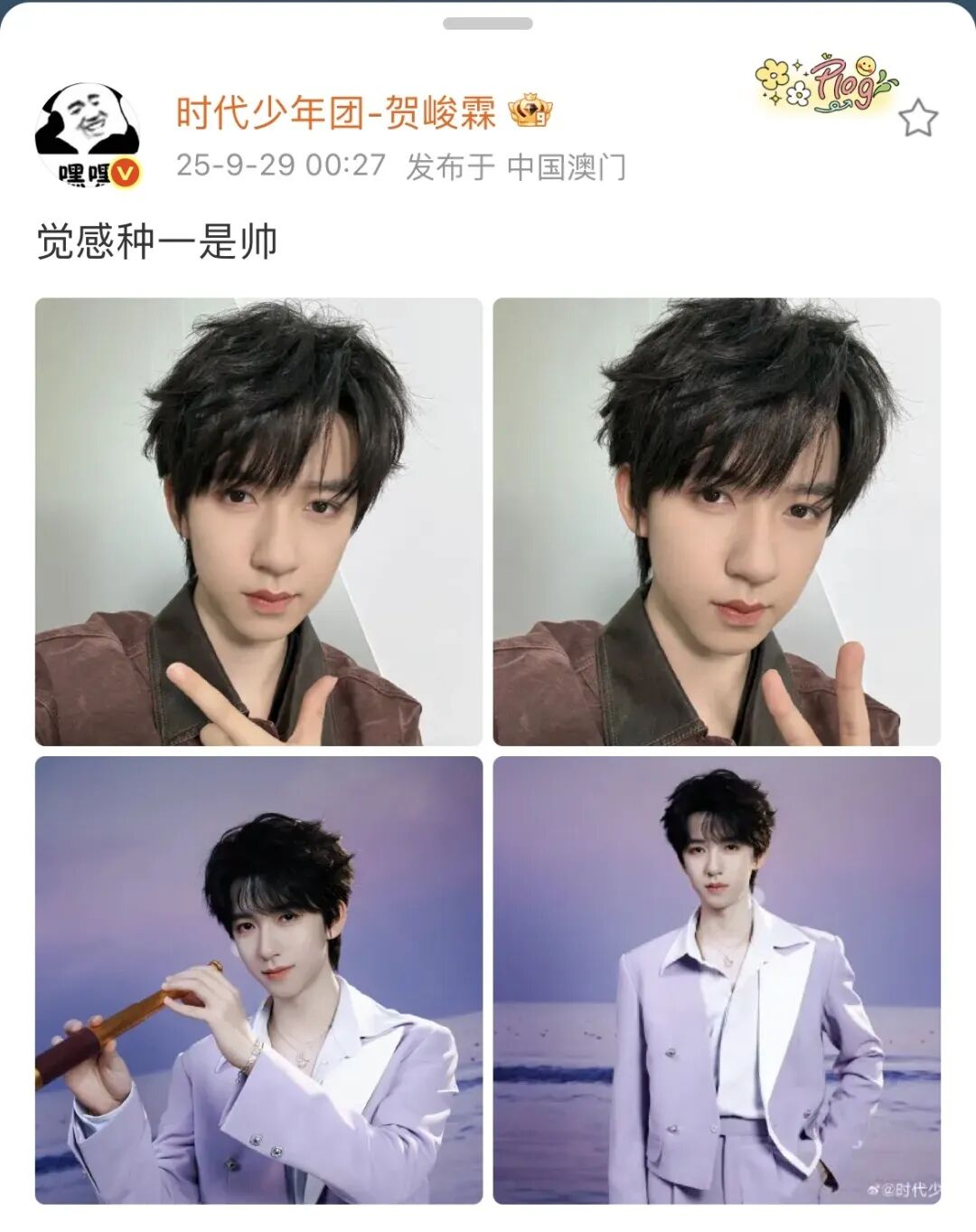 舞台的光影还在眼底轻轻晃着时,小贺@时代少年团-贺峻霖 哥哥的帅在团团脑海中难以忘记,是格外耀眼的模样,早点休息,期待下次的精彩~