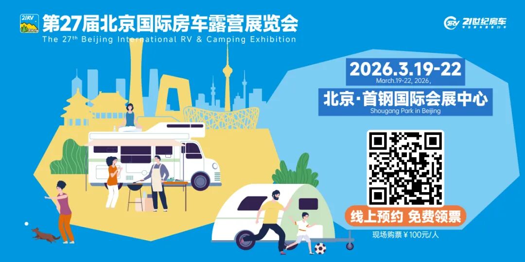 目前,第27届北京国际房车露营展览会招商、观众预登记通道已同步开启,参展品牌可通过官方平台申请展位,观众可提前注册获取入场门票。2026年3月19日-22日,北京・首钢国际会展中心(北京冬奥会、服贸会举办地),第27届北京国际房车露营展览会将邀您共赴移动生活美学之约,共探房车露营产业新未来。