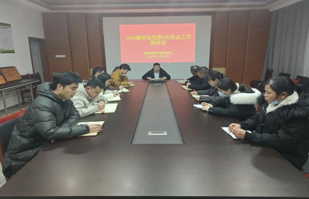 为扎实推进2026届毕业生就业工作,夯实就业服务提质增效的工作根基。2025年12月26日,智能制造与建造学院在仙女湖校区A栋103会议室召开2026届毕业生第5次就业工作推进会。此次会议由党总支书记范向红主持,党总支副书记李思及全体辅导员参加。