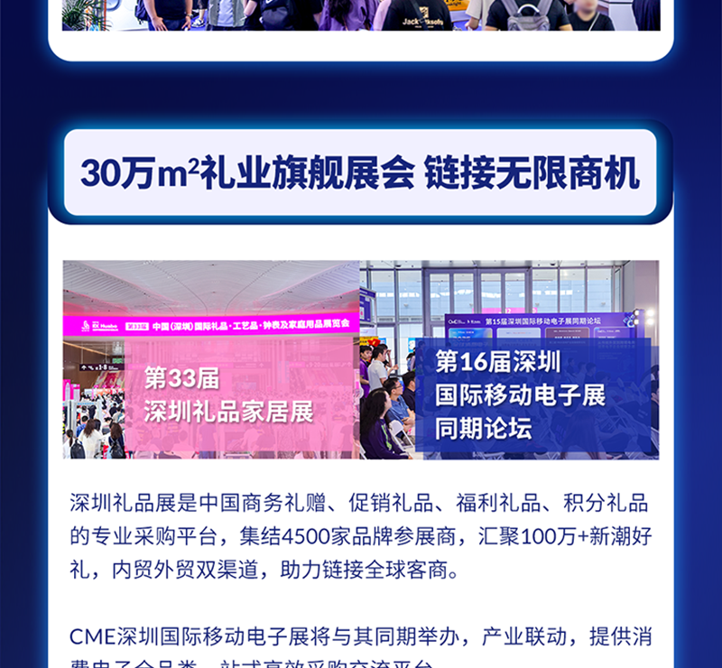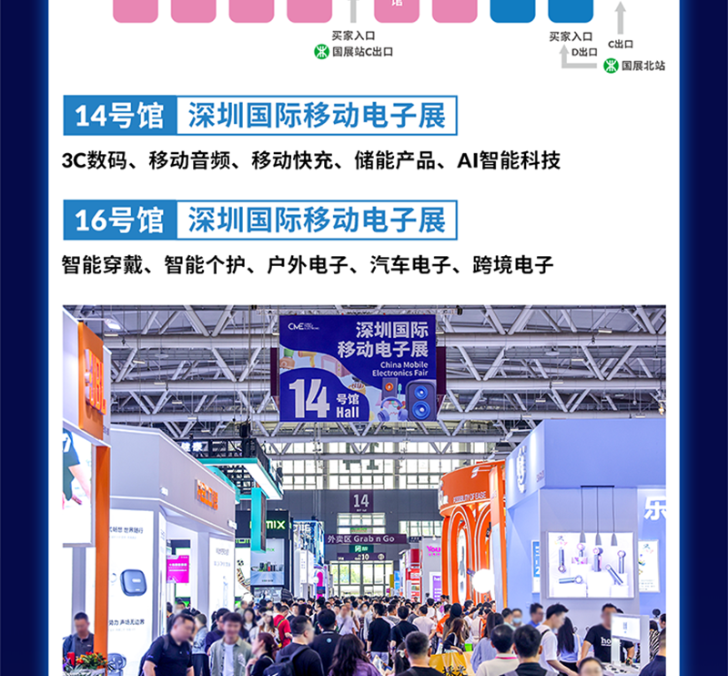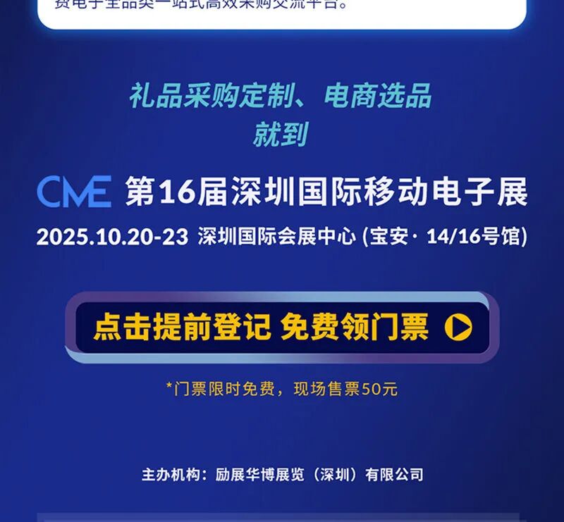 “深圳国际移动电子展”创办于2018年,由励展华博展览(深圳)有限公司主办,经过多年沉淀积累,深圳国际移动电子展已成长为覆盖移动电子供应链及全生命周期的集产品技术、新品首发、贸易合作、交流选品为一体的专业化服务平台,被誉为消费电子行业“风向标”。