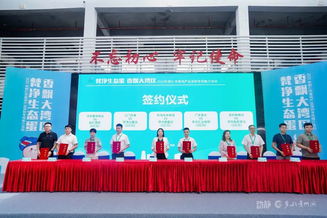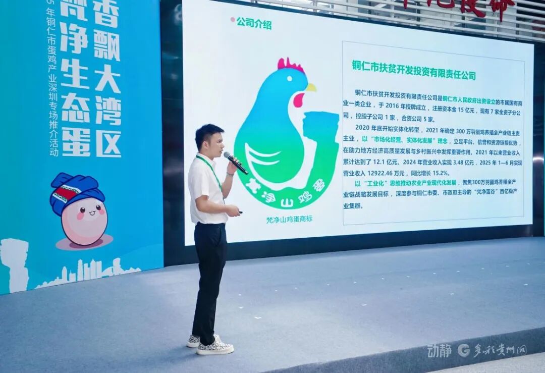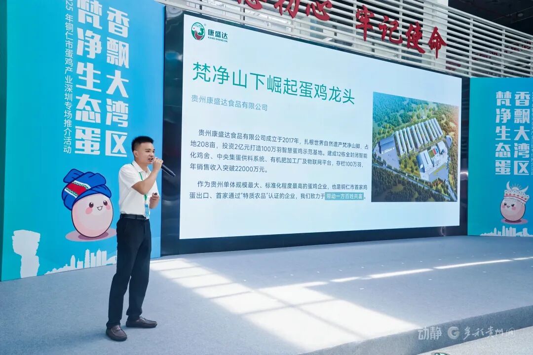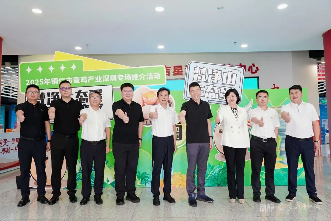 2025年9月28日,2025年铜仁市蛋鸡产业深圳专场推介活动在深圳海吉星消费帮扶中心成功举行。本次活动以“梵净生态蛋·香飘大湾区”为主题,由广东省粤黔协作工作队铜仁工作组、铜仁市农业农村局、深圳市农产品集团股份有限公司主办,贵州电子商务云运营有限责任公司、铜仁市蛋鸡产业协会、铜仁市梵农产销服务有限公司、深圳市深农置地商业运营管理有限公司承办,旨在深度推介源自世界自然遗产地梵净山的优质生态鸡蛋,推动铜仁蛋鸡产业与大湾区市场的精准对接。