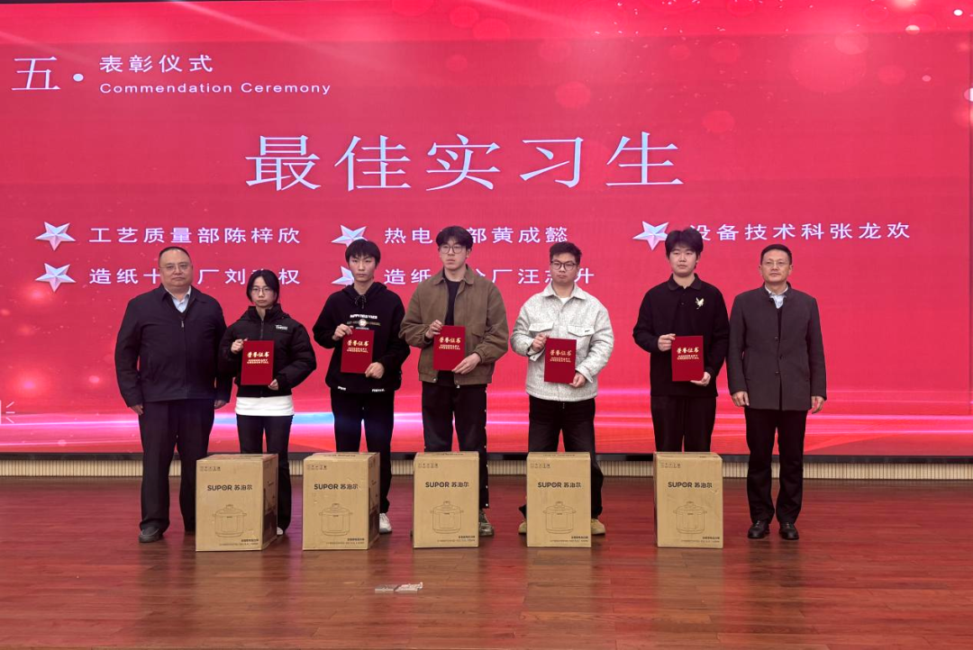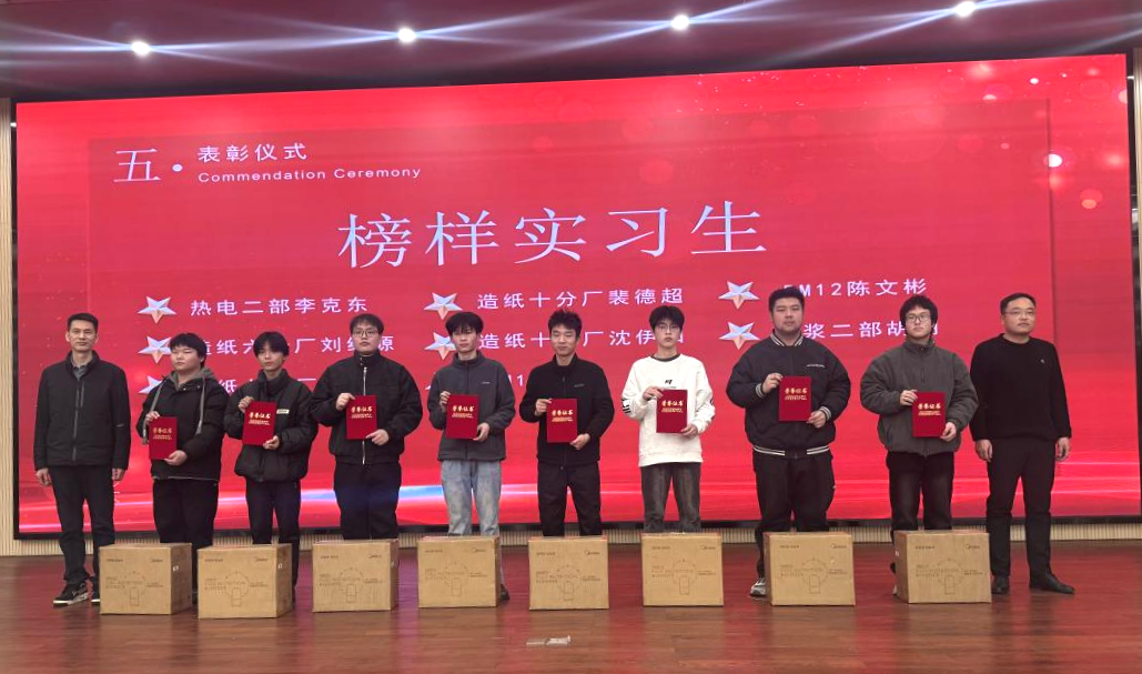 12月29日,金凤凰纸业2025年度实习生总结表彰大会圆满结束,智能制造学院院长助理尹权、党支部书记余杰、驻厂指导教师肖健,辅导员冯薇铭受邀出席表彰大会。会上,智能制造学院学子们以出色的专业素养和扎实的实践能力,赢得了用人单位的高度赞誉。