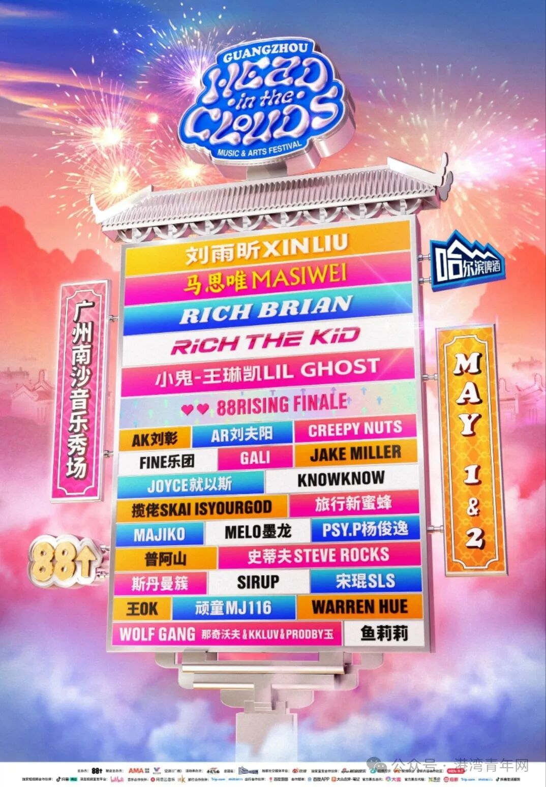 被譽為「亞洲科切拉」的Head In The Clouds音樂節(HITC),今年迎來主辦方88rising成立十週年的里程碑!2025年5月1日至2日,這場音樂狂歡將首次登陸廣州南沙音樂秀場,以「雲思妙想」為主題,集結亞洲頂流與國際巨星,為樂迷打造一場視聽與文化的跨界盛宴。從日本嘻哈神團Creepy Nuts、歐美潮人Rich The Kid,到華語樂壇先鋒劉雨昕、馬思唯、小鬼王琳凱,再到印尼說唱奇才Rich Brian……超強陣容橫跨多元風格,堪稱「天花板級」音樂現場。