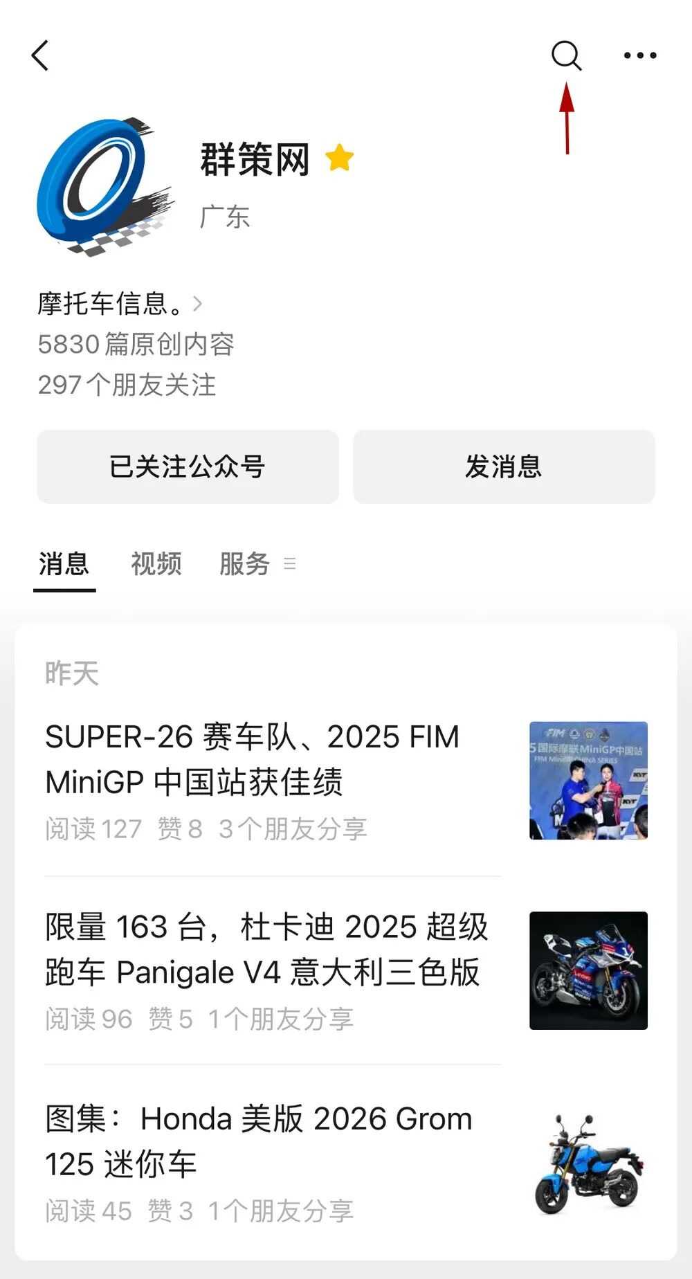更多精彩内容,大家可以进入群策网公众号的页面,点击页面右上角的圆圈(如下图、红色箭头所指之处)、输入关键词进行快速的搜索。