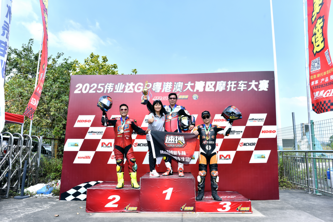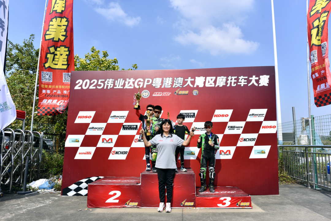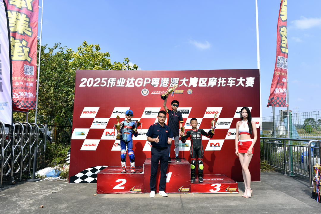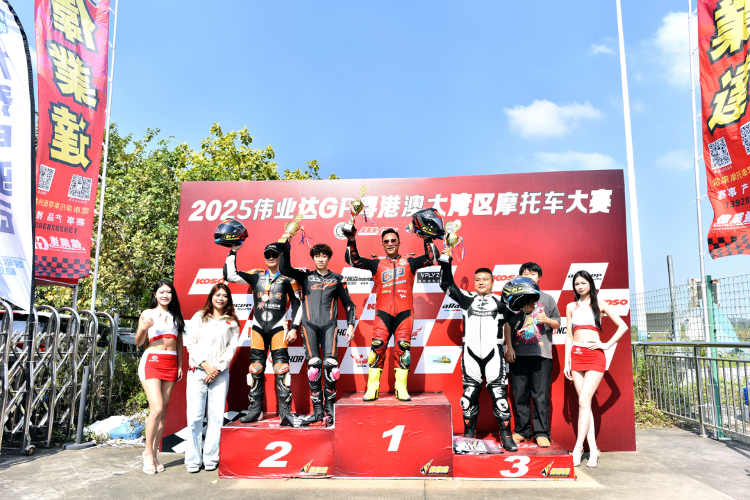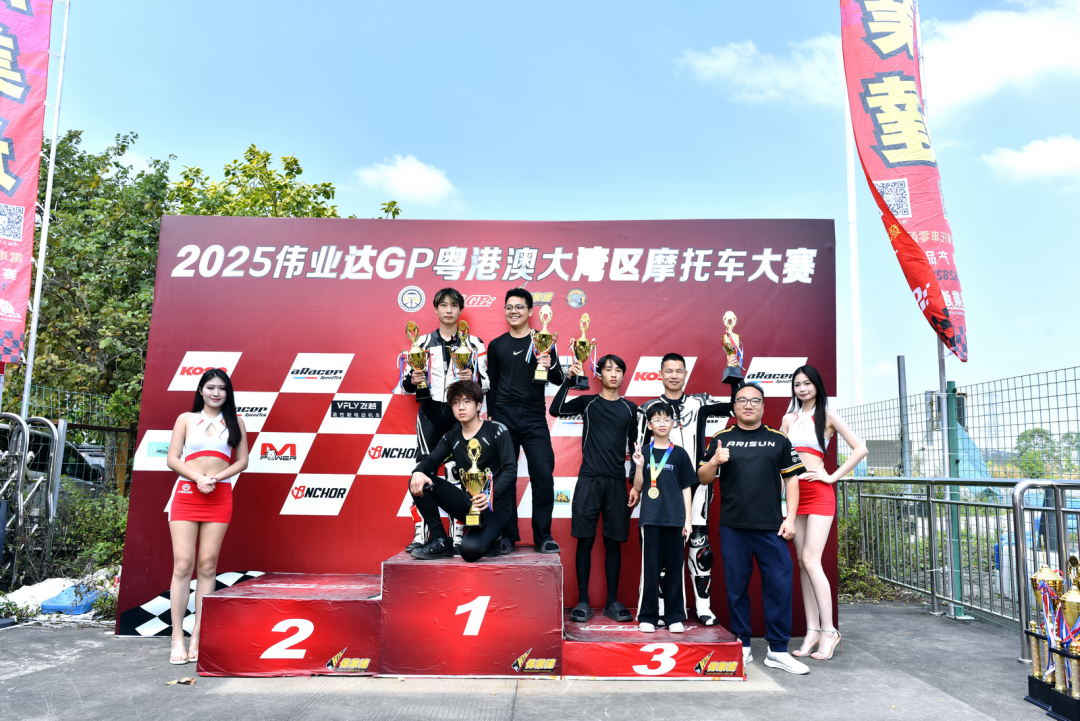 下面的图片,2025 伟业达 GP 粤港澳大湾区摩托车大赛恩平站,各竞赛组别的成绩和颁奖特写。