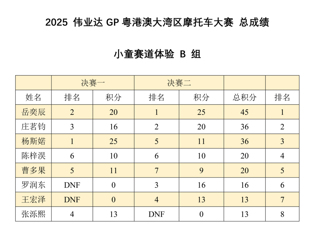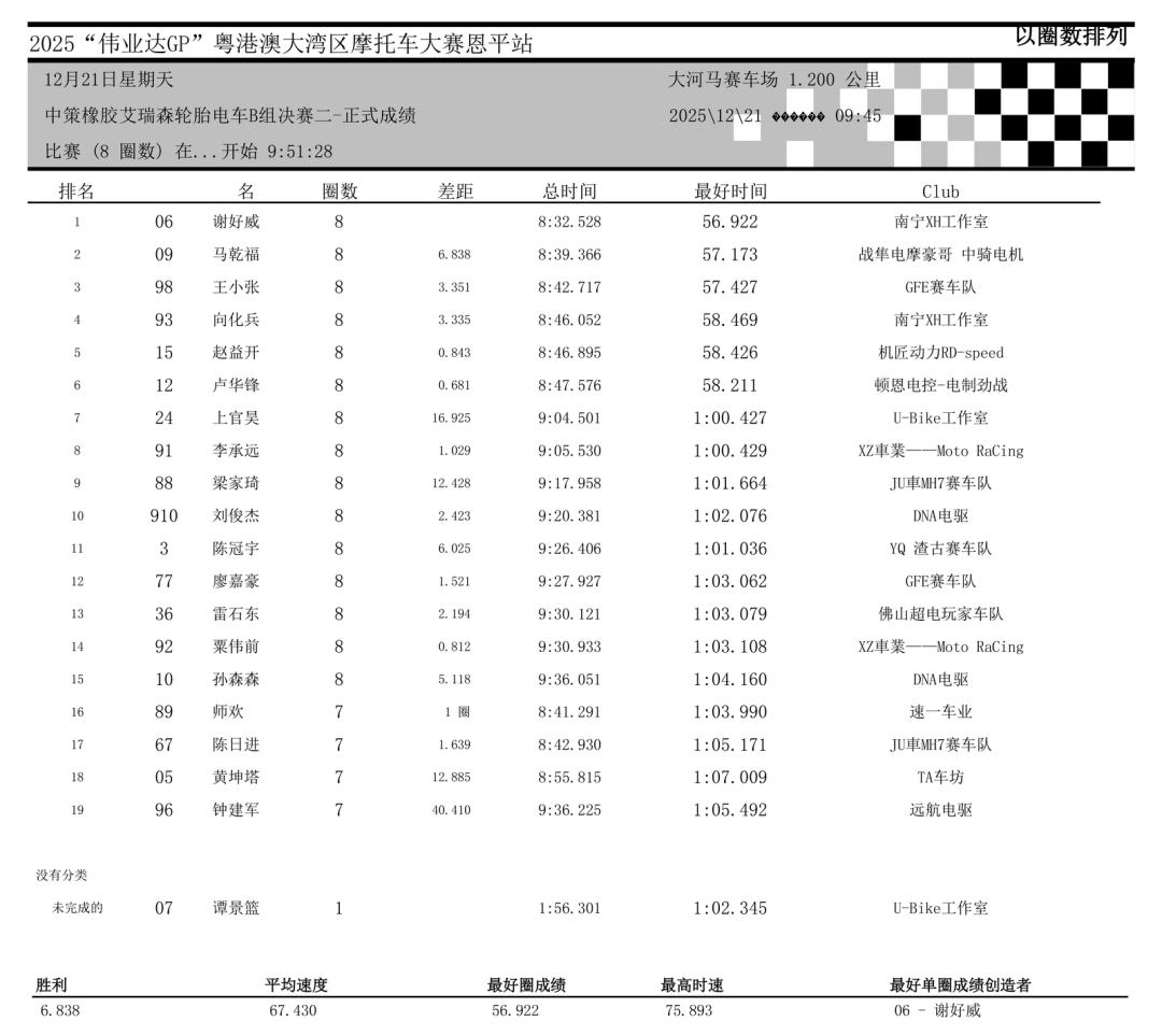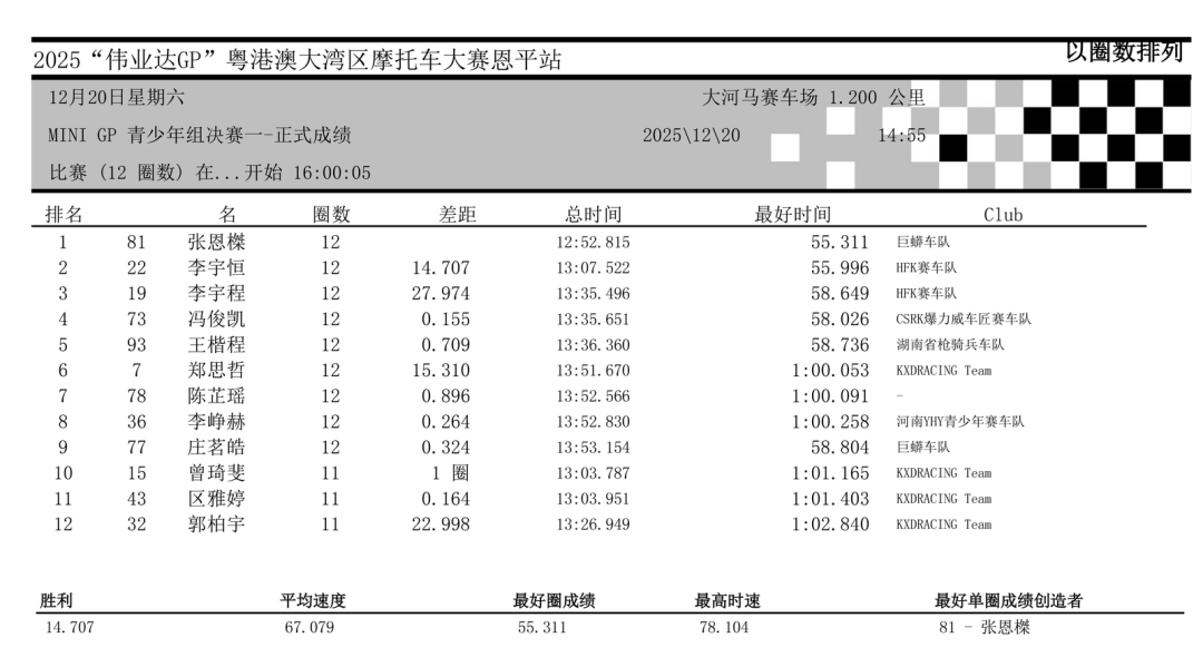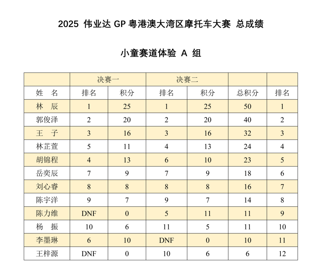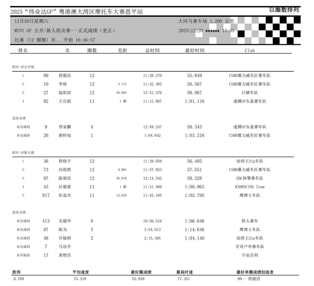 下面的图片,2025 伟业达 GP 粤港澳大湾区摩托车大赛恩平站,各竞赛组别的成绩和颁奖特写。