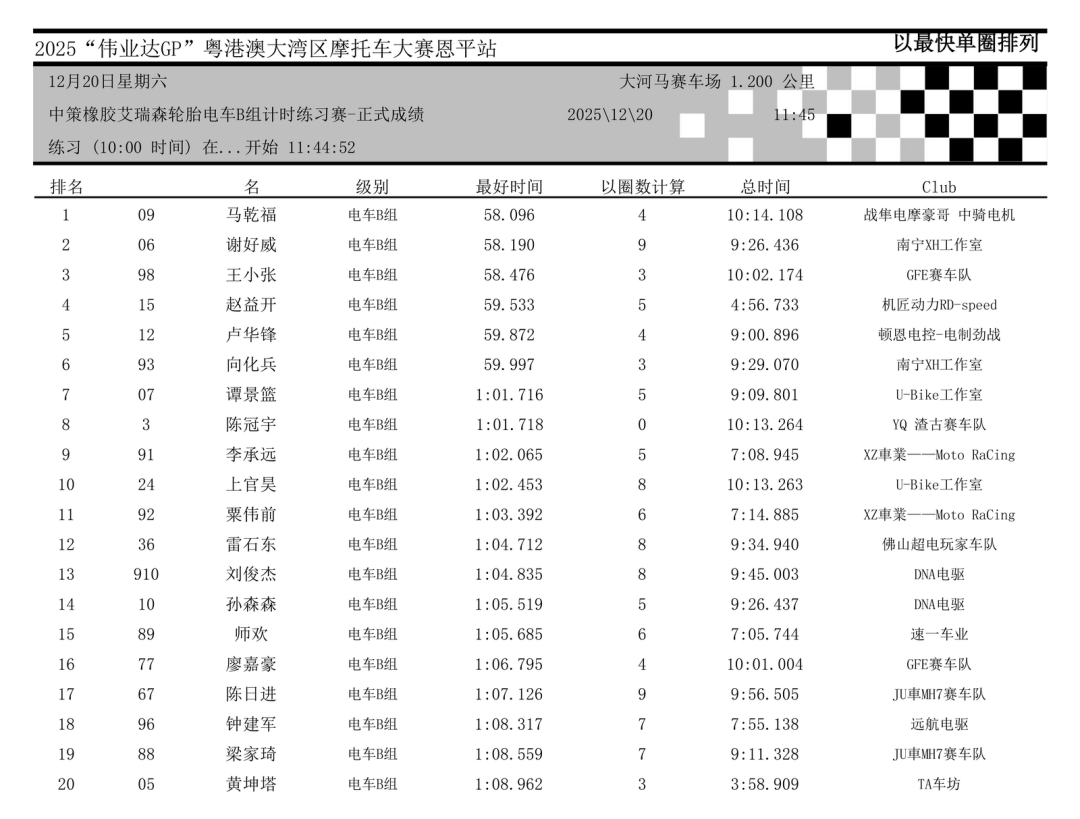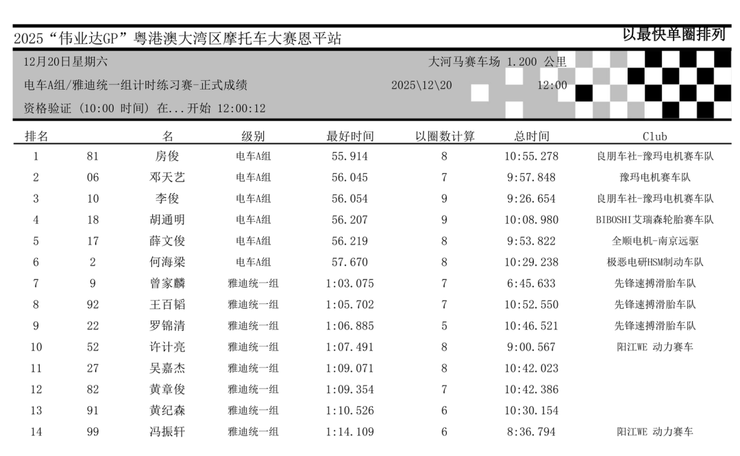 * 雅迪 VFLY 统一组(跨骑):1 分 02.722 秒,曾家麟;