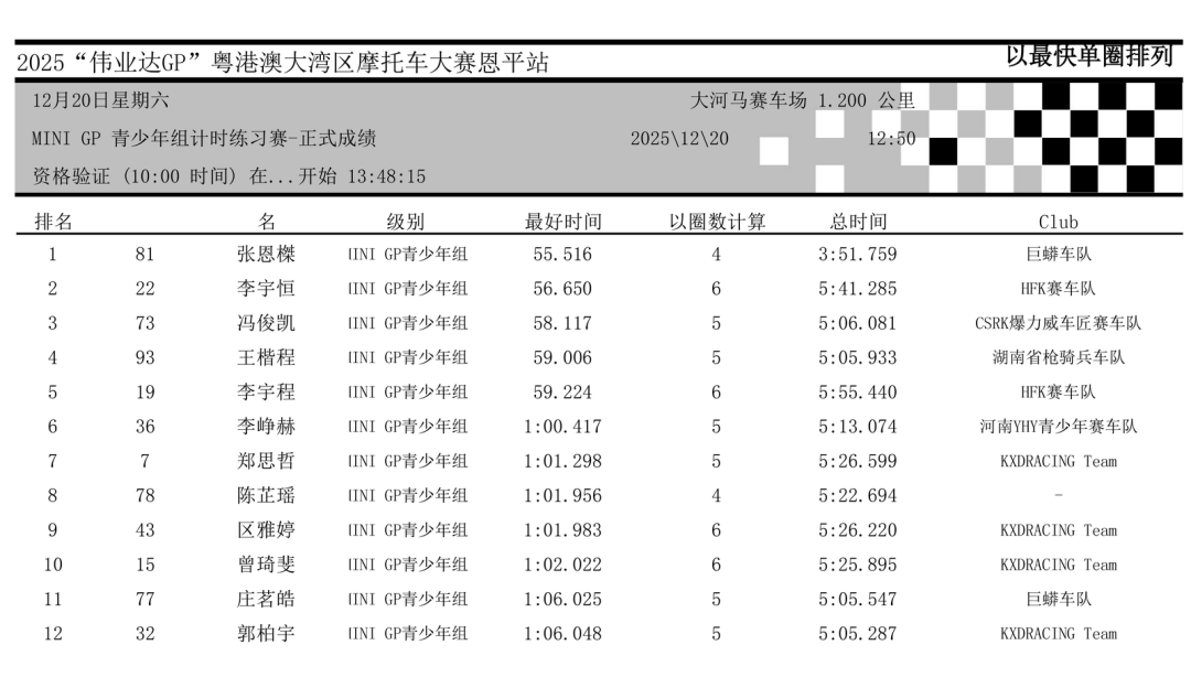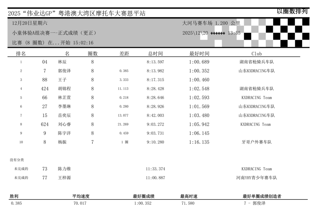 * 小童赛道体验 A 组:59.101 秒,黄霆诺;
