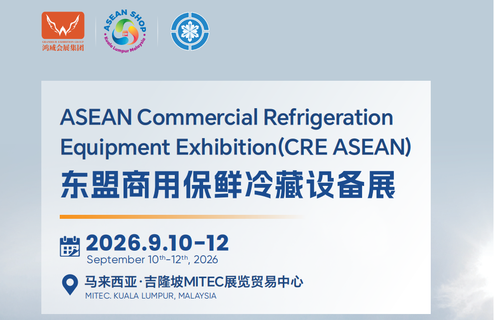 展会时间:2026 年 9 月 10-12 日展会地点:马来西亚・吉隆坡 MITEC 展览贸易中心主办单位:广东鸿威国际会展集团有限公司东盟 6.8 亿人口的热带消费市场,正迎来冷链产业的黄金发展期!全年高温高湿的环境造就了食品保鲜的刚性需求,中产阶级崛起推动消费向 “鲜” 升级,生鲜电商、预制菜、连锁餐饮的爆发式增长,让东盟冷链物流市场预计 2028 年突破 300 亿美元,年复合增长率达 18%。而区域内冷链终端设备的供给缺口,更成为全球保鲜冷藏设备企业的掘金新机遇。2026 东盟商用保鲜冷藏设备展(CRE ASEAN),依托东盟零售博览会(ASEAN SHOP)成熟平台,聚焦热带气候下的高效节能冷链解决方案,是连接中国智造与东盟市场的核心商贸桥梁。展会汇聚全球优质展商与采购商,不仅集中展示高性价比、智能化的商用保鲜冷藏设备,更搭建精准的商贸洽谈场景,助力企业抢占 RCEP 时代先机,实现东盟市场拓展的跨越式发展。众多东盟国家行业协会强力支持,政策、技术、资本三重赋能,为参展企业打造一站式东盟冷链市场开拓平台!核心展览范围
