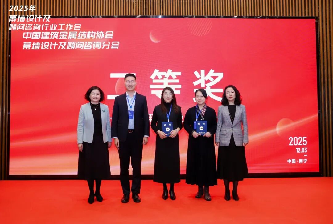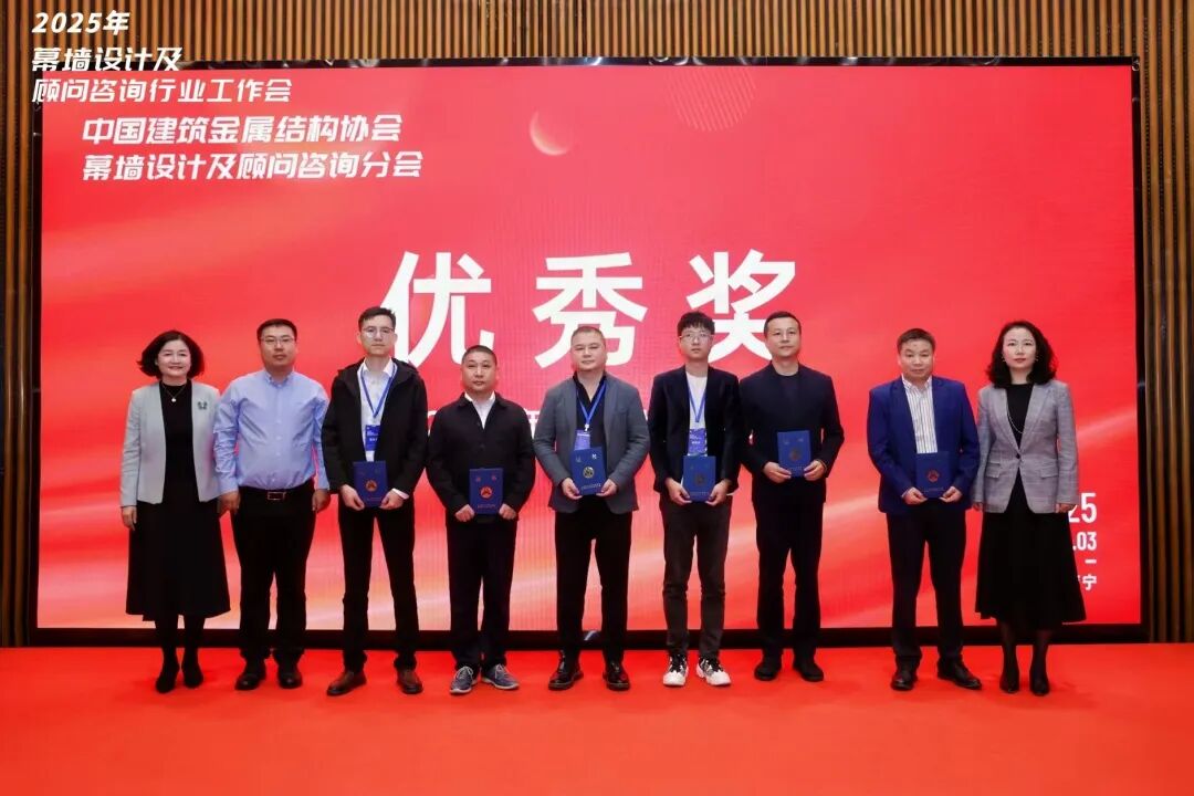 在工作会的重要环节——2025年幕墙设计大赛决赛颁奖典礼上,中港金属董事长应杨林作为特邀颁奖嘉宾,为荣获决赛杰出设计师们颁奖。这一角色不仅彰显了中港金属在行业内的品牌地位,也体现了公司对培养设计新生力量、推动行业创新发展的责任与担当。