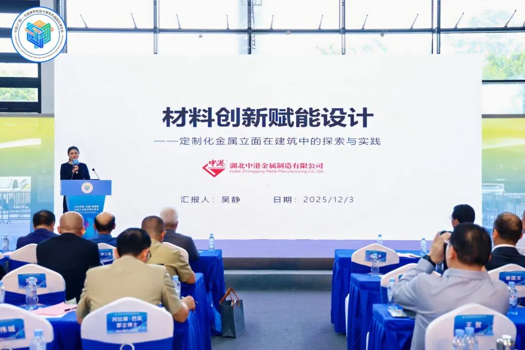在备受瞩目的 “中国—东盟门窗幕墙与施工设备供需对接会” 上,中港金属作为复杂曲面幕墙系统解决方案的领先者,由副总经理吴静进行了重点推介。