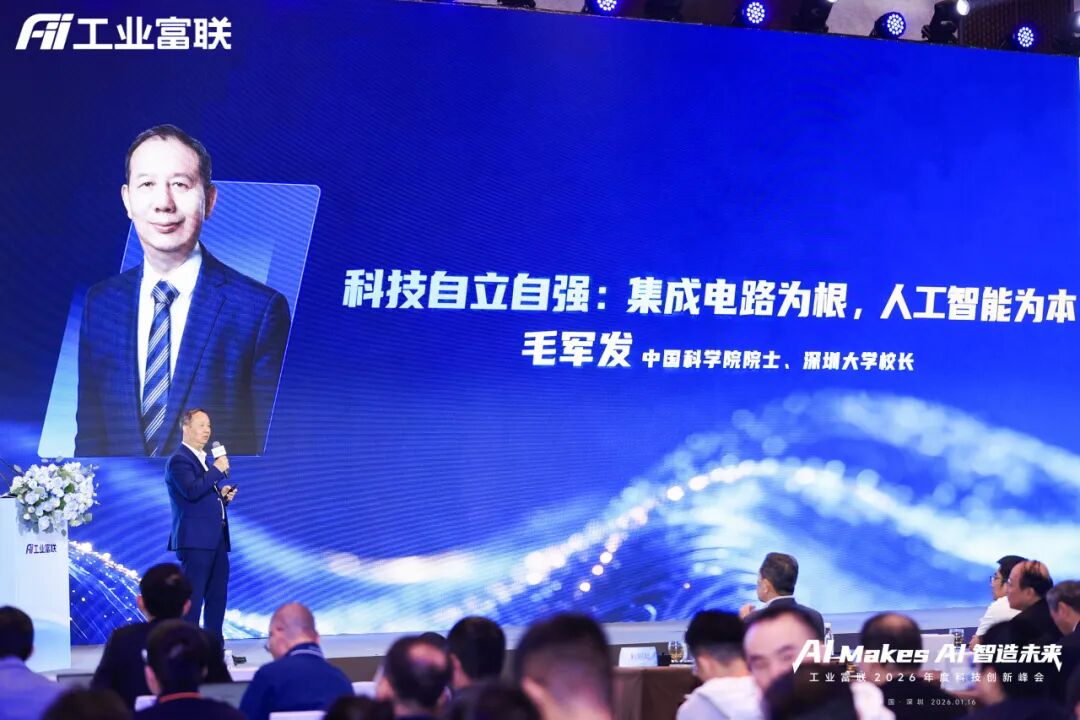1月16日,工业富联2026年度科技创新峰会在深圳举行。大会以“AI Makes AI”为主题,聚焦人工智能与智能制造深度融合,围绕产业技术演进、应用落地与生态协同等核心议题展开深入探讨,共同展望新一轮产业升级的机遇与挑战。