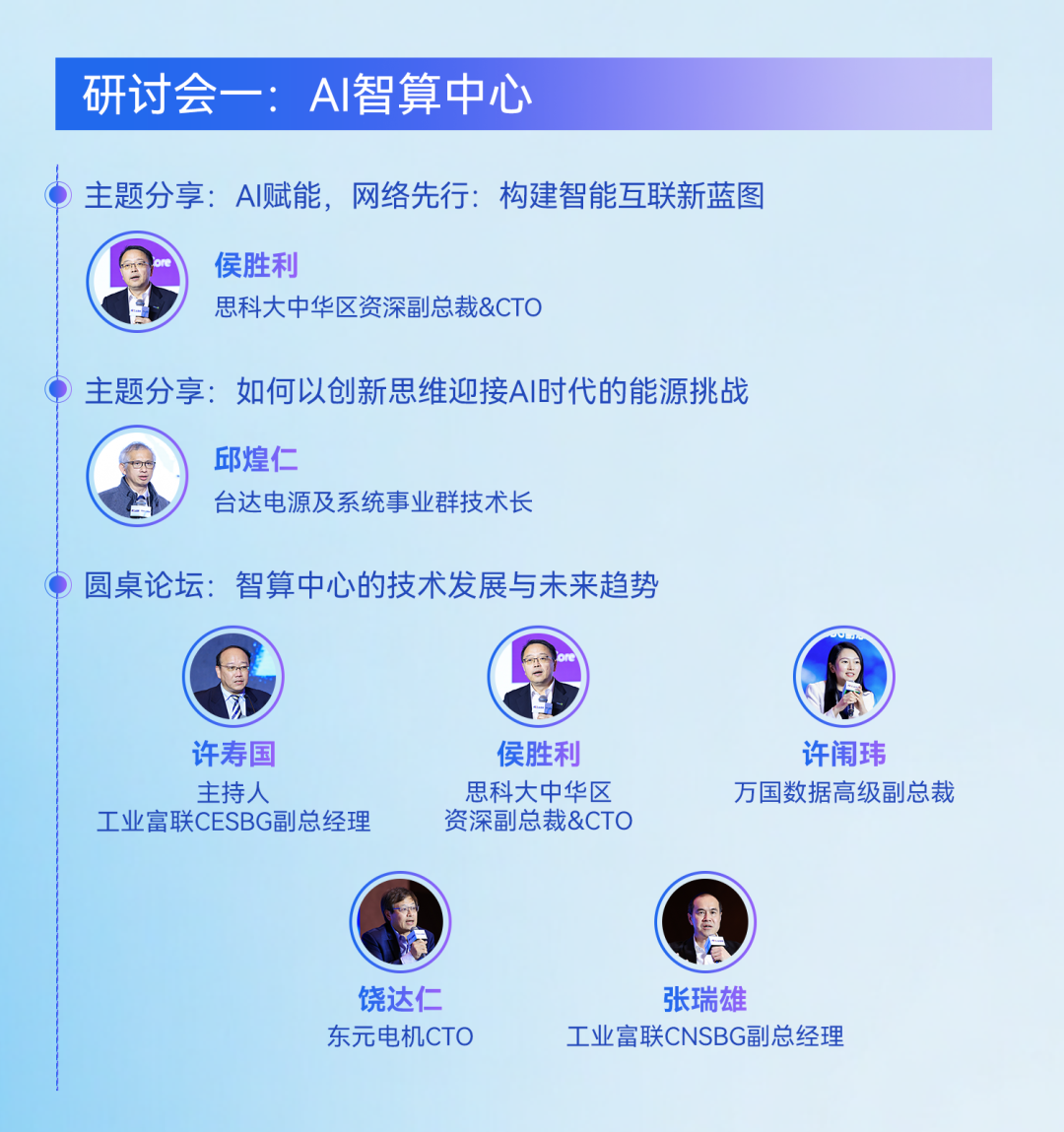在“AI智算中心”专题,思科大中华区资深副总裁兼首席技术官侯胜利深入阐述了超大规模算力集群架构的技术创新等关键方案;台达电源及系统事业群技术长邱煌仁则分享了机柜级电源散热的全链条解决方案。