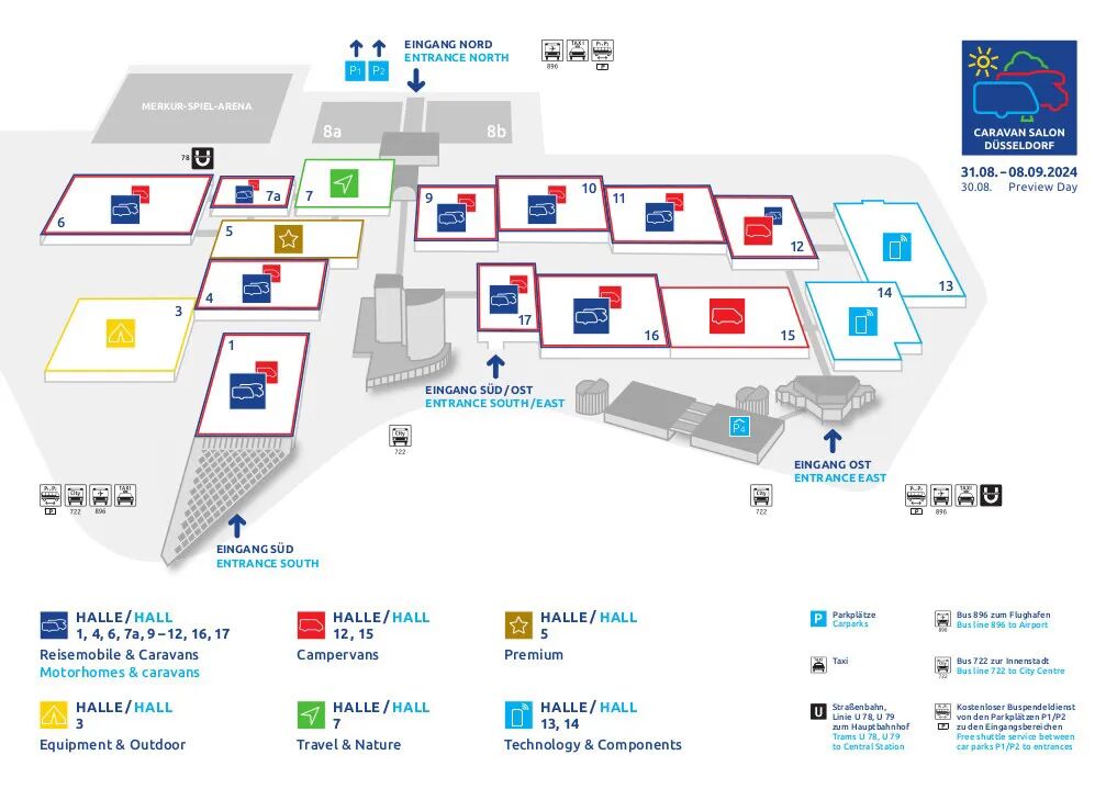 德国杜塞尔多夫房车展Caravan Salon Düsseldorf是全球领先的移动旅行贸易展览会,也是制造商、经销商、供应商以及充满热情的社区的中心聚会场所。该展会主要展示房车、拖挂式房车、露营车、车辆技术、零部件和附加配件、帐篷、移动房屋、露营配件、户外装备、旅游目的地以及露营场地等。自1962年起每年举办,2026年的展会将于8月28日至9月6日在杜塞尔多夫展览中心举行,吸引国际观众前来探索最新的休闲旅行创新。