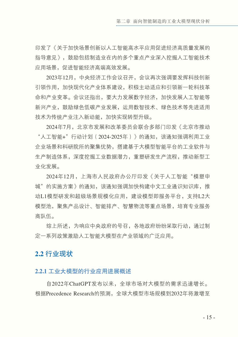 智能制造是制造强国建设的主攻方向,是新时代新征程加快发展新质生产力、推进新型工业化的战略性、引领性任务。工业大模型因其出色的上下文理解、指令遵循、内容生成和场景泛化等能力,已成为推动智能制造的重要使能技术之一。工业大模型与制造装备、工业软件的集成应用,也为人工智能与智能制造的深度融合拓展了空间。
