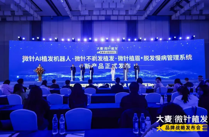 在大麦“AI植发5.0时代”品牌战略发布会上,大麦重磅揭晓四大新品:亚洲首款 NMPA 三类认证的微针 AI 植发机器人、微针不剃发植发、微针植眉以及大麦慢病管理。大麦始终以开拓者姿态引领行业变革,推动行业从 “症状治疗” 向 “全生命周期健康管理” 转型,开创了中国微针植发、微针AI植发、脱发健康管理的新纪元。