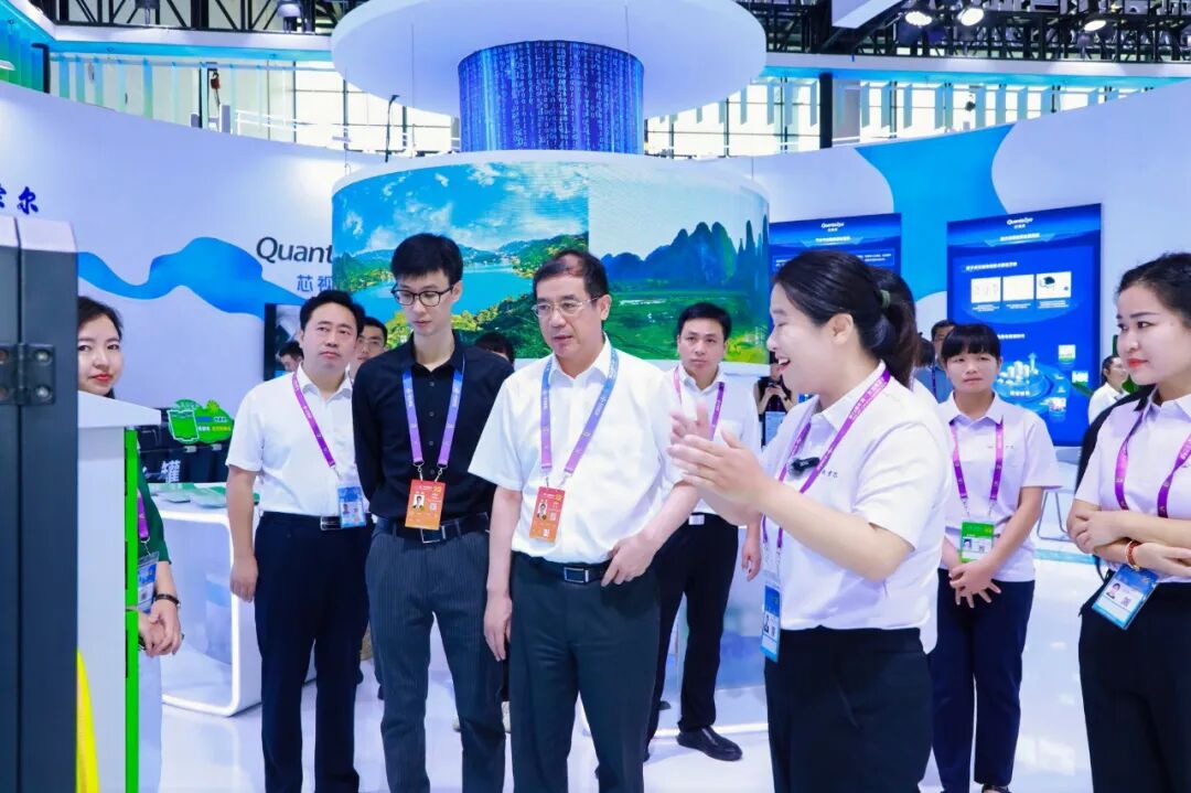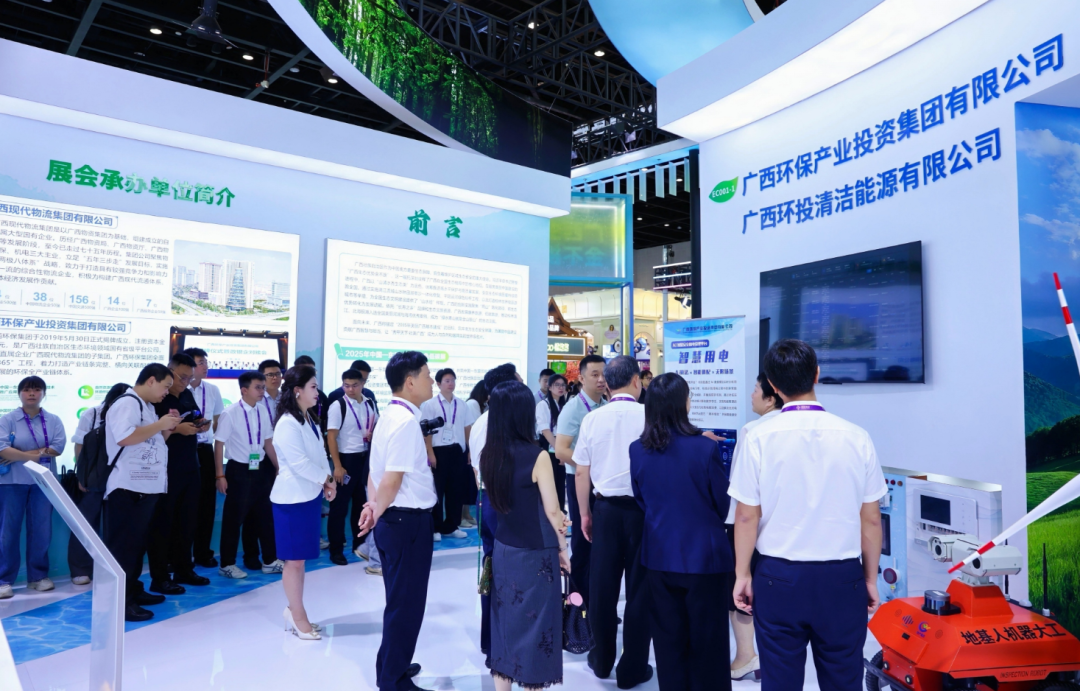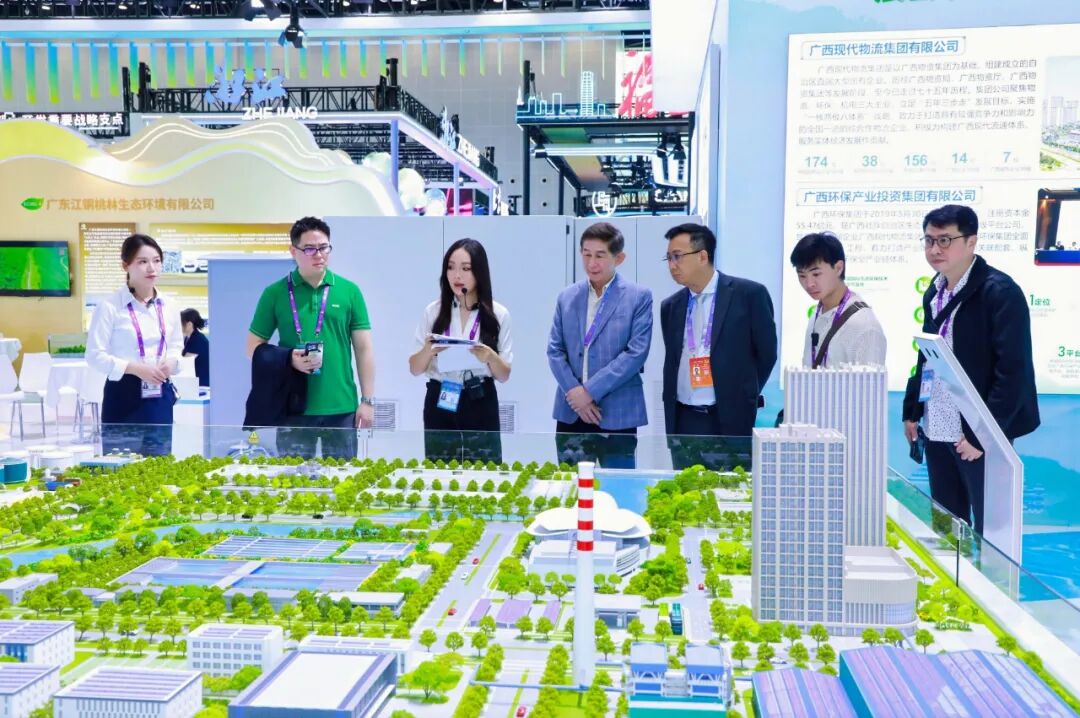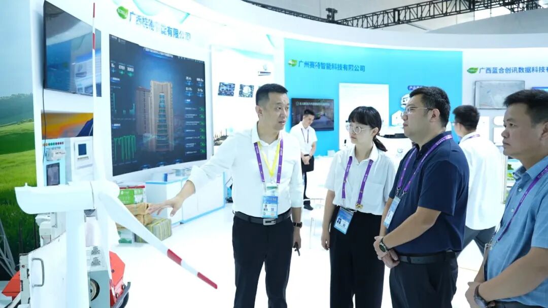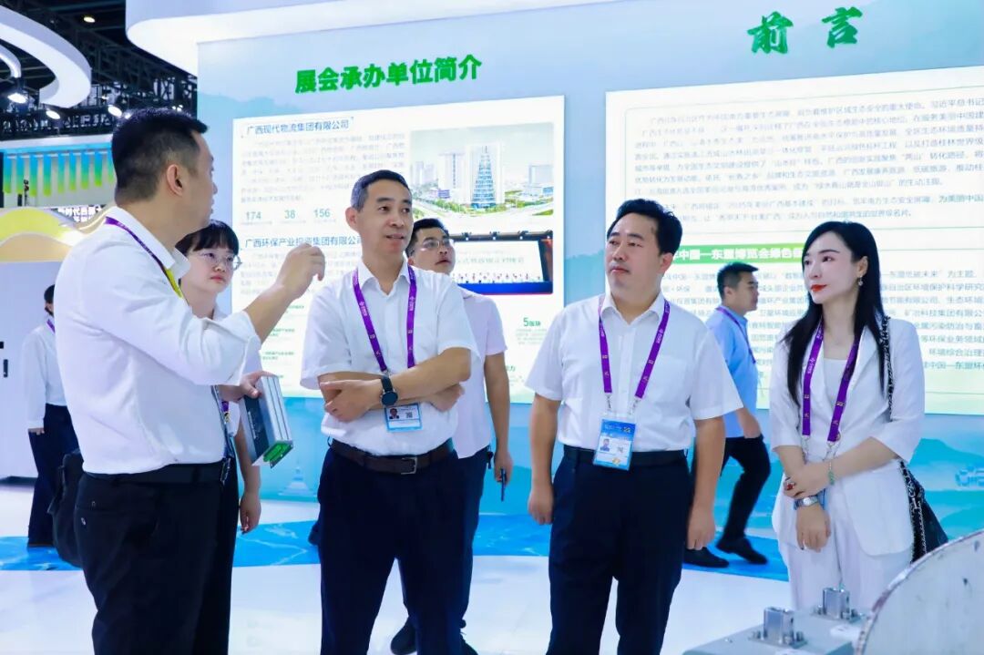 全州县人民政府副县长王鹏(右二)参观2025年中国—东盟博览会绿色低碳展。
